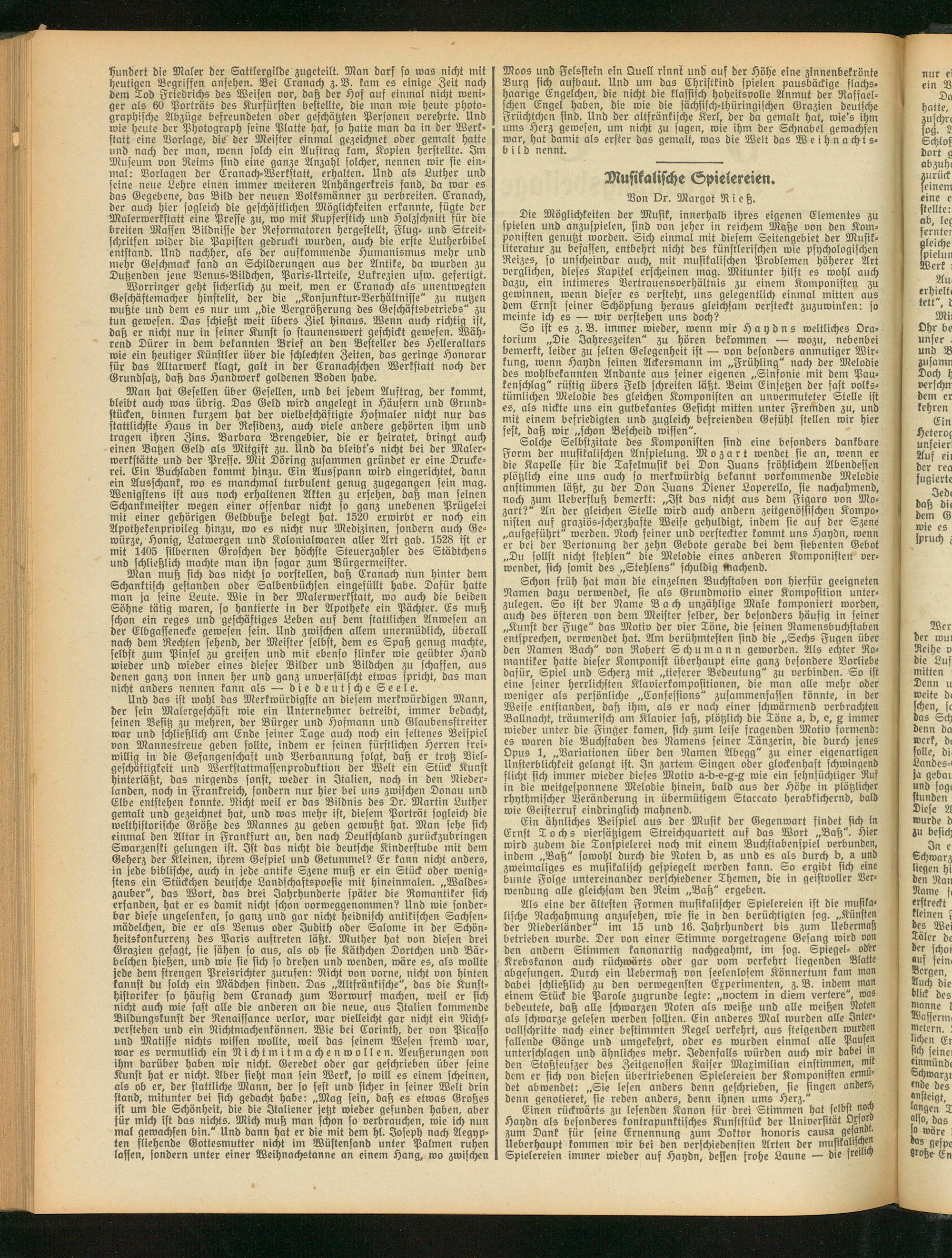 Einen rückwärts zu lesenden Kanon für drei Stimmen hat selbst noch Haydn als besonderes kontrapunktisches Kunststück der Universität Oxforo zum Dank für seine Ernennung zum Doktor honoris causa gejano. Ueberhaupt kommen wir bei den verschiedensten Arten der musikalischen Spielereien immer wieder auf Haydn, dessen frohe Laune — die {retinv