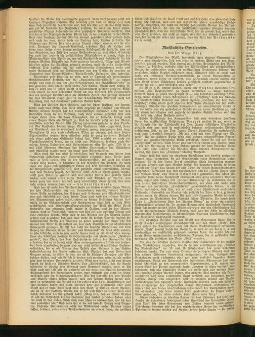 Als eine der ältesten Formen Musikalischer Spielereien ist die musikalische Nachahmung anzusehen, wie sie in den berüchtigten fog. „Künsten der Niederländer" int 15 und 16. Jahrhundert bis zum Uebermah betrieben wurde. Der von einer Stimme vorgetragene Gesang wird von den andern Stimmen kanonartig nachgeahmt, im sog. Spiegel- oder Krebskanon auch rüchwärts oder gar vom verkehrt liegenden Blatte abgesungen. Durch ein Uebermah von seelenlosem Könnertum kam man dabei schließlich zu den verwegensten Experimenten, z. B. indem man einem Stück die Parole zugrunde legte: „noctem in diem verfere", was bedeutete, daß alle schwarzen Noten als weiße und alle weihen Noten als schwarze gelesen werden sollten. Ein anderes Mal wurden alle Intervallschritte nach einer bestimmten Regel verkehrt, aus steigenden wurden fallende Gänge und umgekehrt, oder es wurden einmal alle Pansch unterschlagen und ähnliches mehr. Jedenfalls würden auch wir dabei m den Stoßseufzer des Zeitgenosfen Kaiser Maximilian einstimmen, nm dem er sich von diesen übertriebenen Spielereien der Komponisten ermüdet abwendet: „Sie lesen anders denn geschrieben, sie fingen anders, denn genotieret, sie reden anders, denn ihnen ums Herz." ,