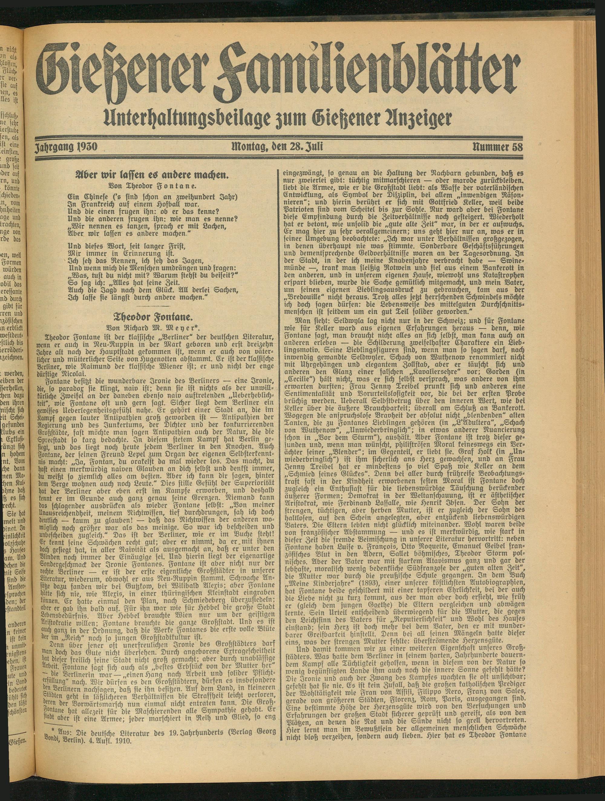Unterhaltungsbeilage zum Gießener Anzeiger