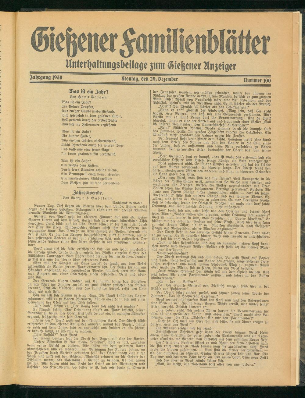 ________Unterhaltungsbeilage zum Gießener Anzeiger
