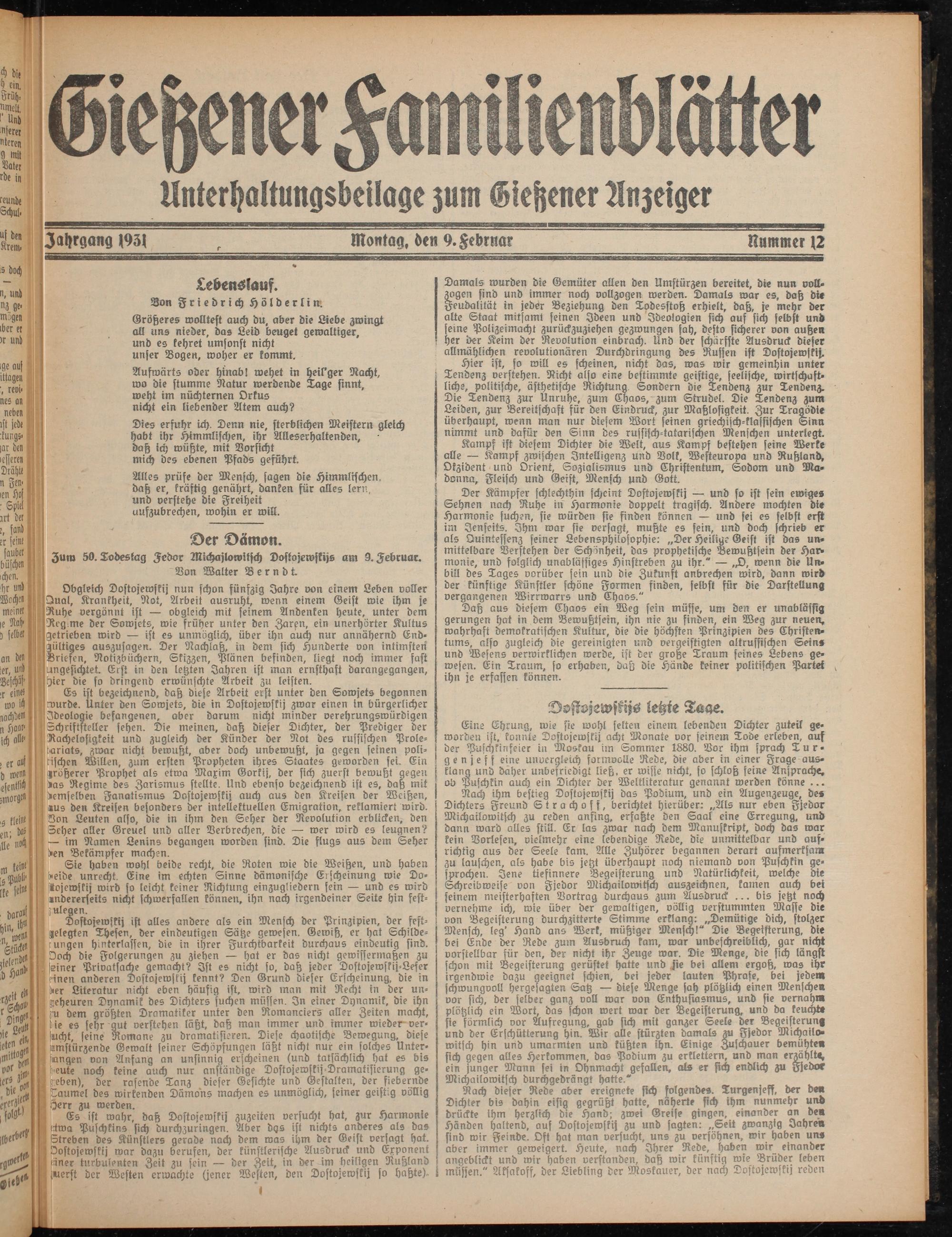 Unterhaltungsbeilage zum Gießener Anzeiger