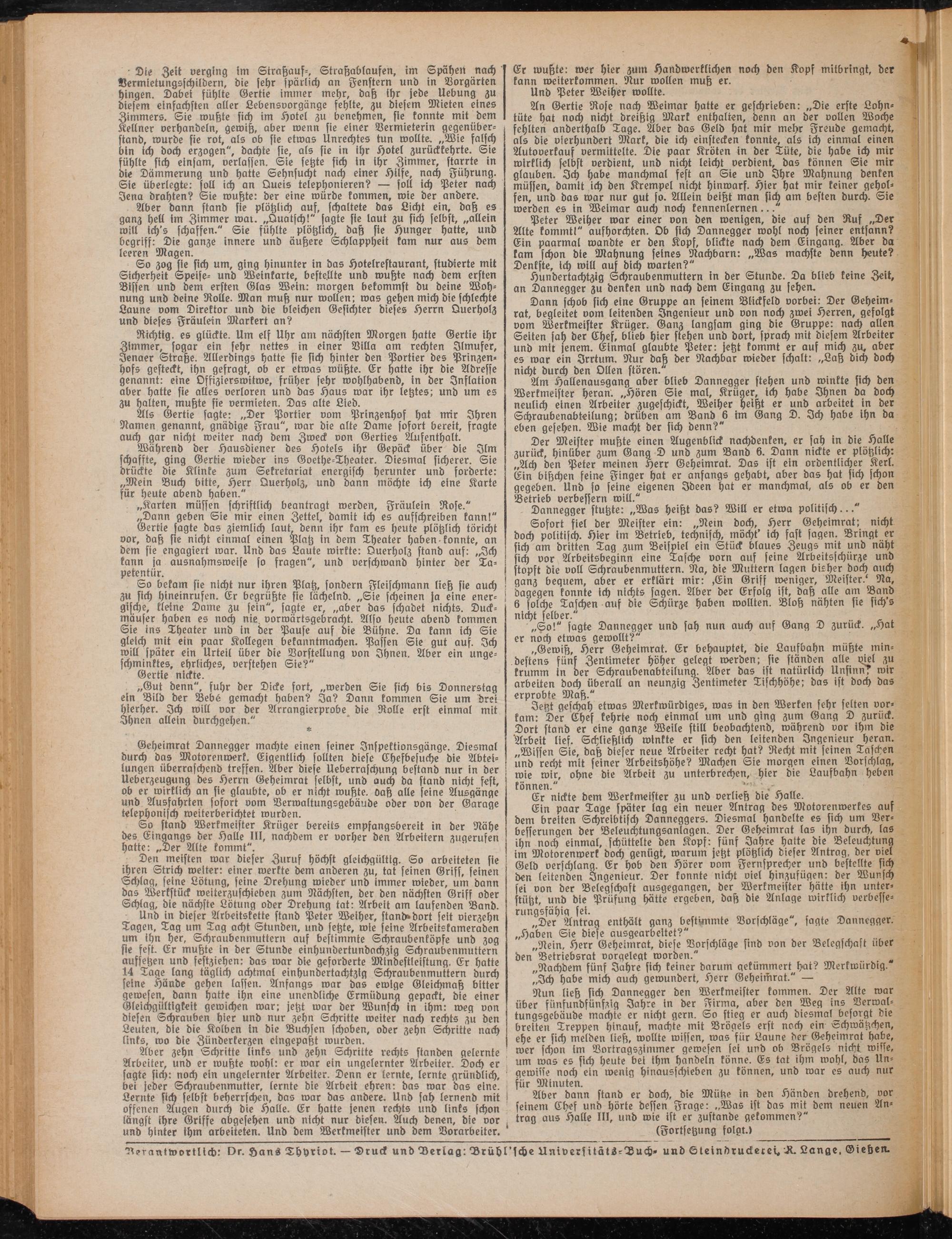 verantwortlich: vr. Hans Thyriot. — Druck und Der lag: Brühl'sche Univ ersitätS-'Luch» und Steindruckekei.R. Lange. Gießen.