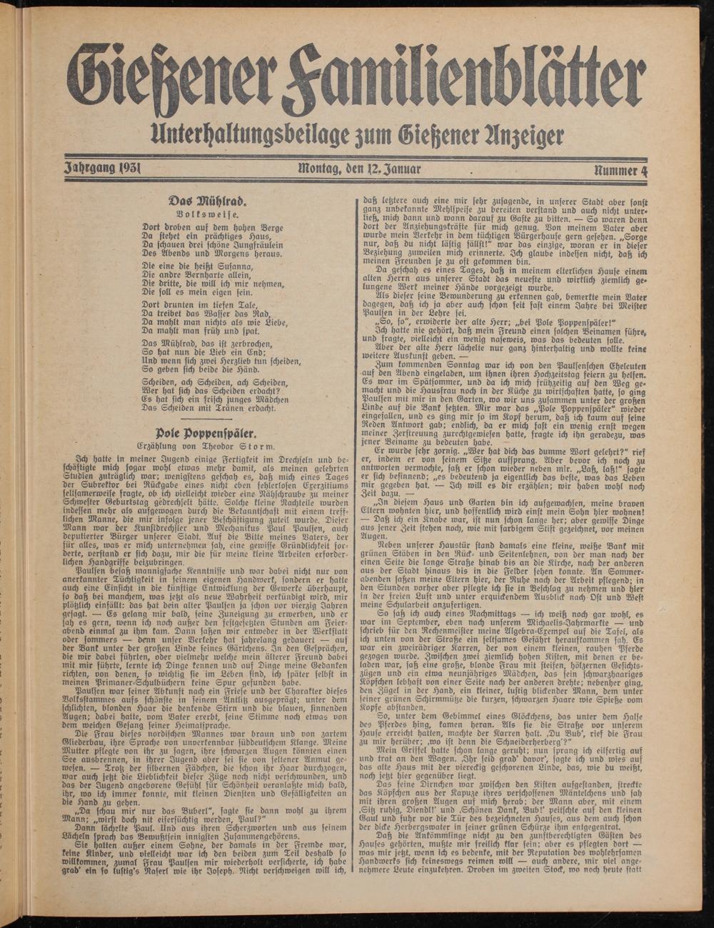 Jahrgang 1931 Montag, den 12.Januar Nummer 4