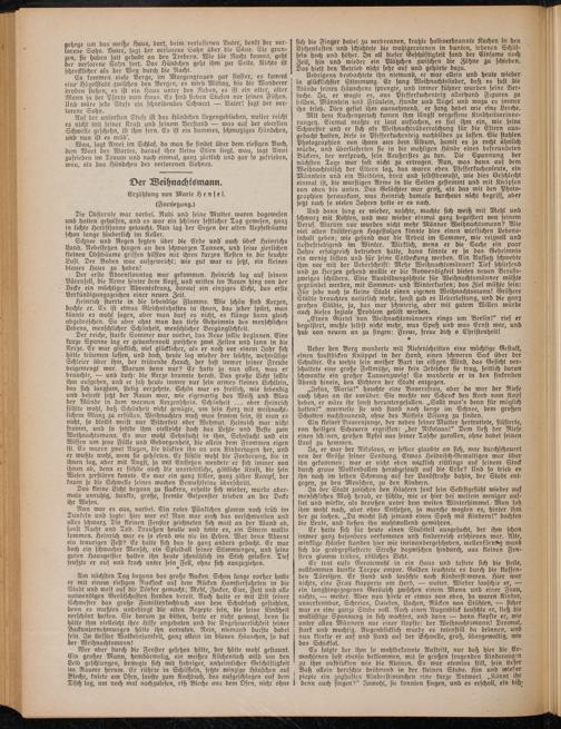 Uebrigens beobachtete ihn niemand, er war allein und heute wieder in glücklichster Stimmung. Er sang Weihnachtslieder, daß es fast die Wände seines Häuschens sprengte, und immer kühner wurden seine Versuche. Ja, er wagte es, aus Pfefferkuchenteig allerhand Figuren zu bilden. Männlein und Fräulein, Hunde und Vögel und wozu es immer ihn trieb. Dies gefiel ihm ausnehmend, er fang dabei wie eine Lerche.