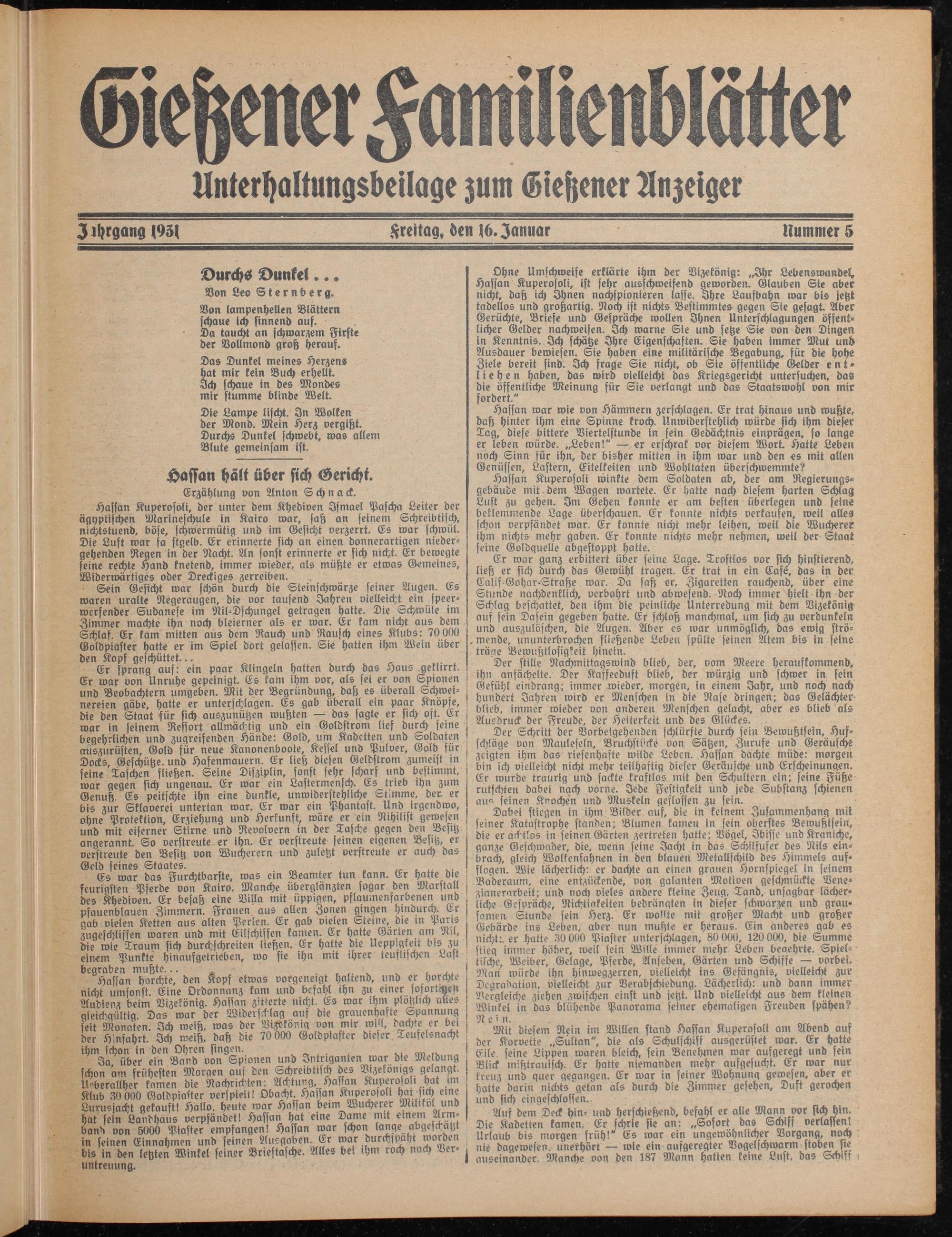 Unterhaltungsbeilage zum Siebener Anzeiger