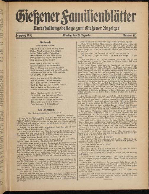 Schwere Wunder rauschen in mich nieder, Goldne Flügel, weit aus Urwelttagen, Da im Wehen weicher Liebeslieder Meine Mutter mich ans Licht getragen. Menschenwerdung ewigem Geschlechte! Seid gesegnet, heilige Nächte!