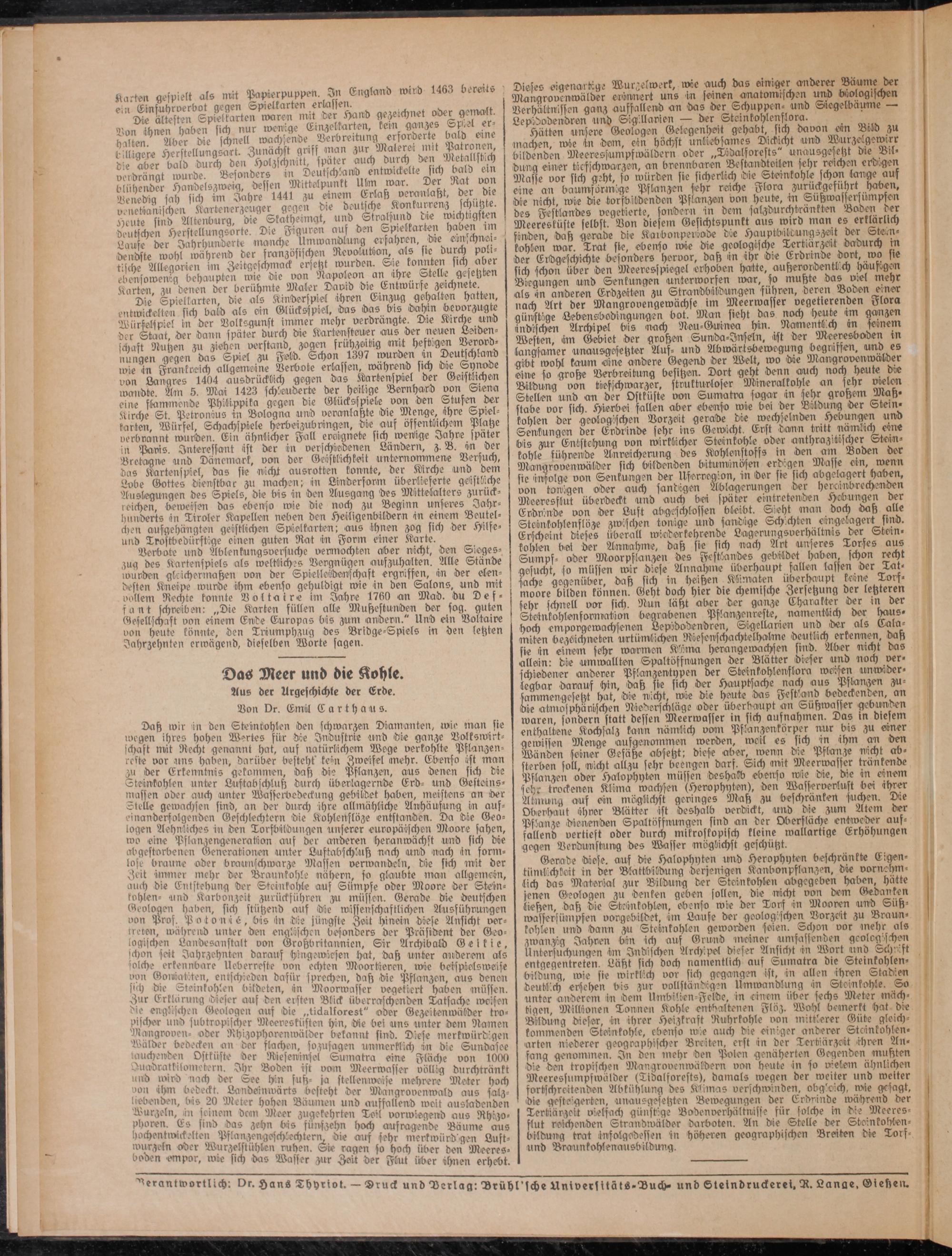 verantwortlich: Dr. HanS Thyrivl. — Bruck und Verlag: Brühl'sche Universitäts.Buch. und vteindruckerei. A. Lange, Gießen.