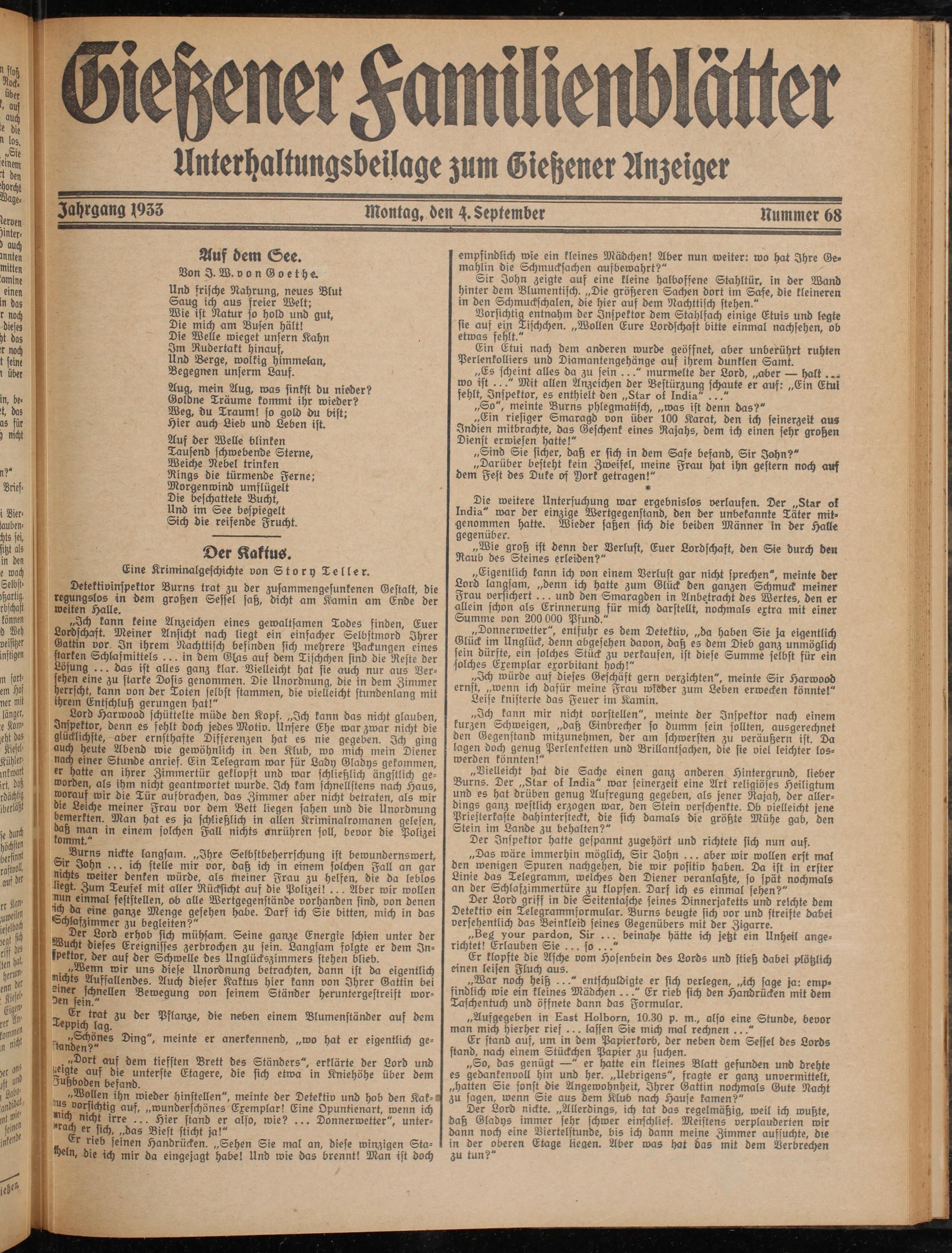 Unterhaltungsbeilage zum Eichener Anzeiger