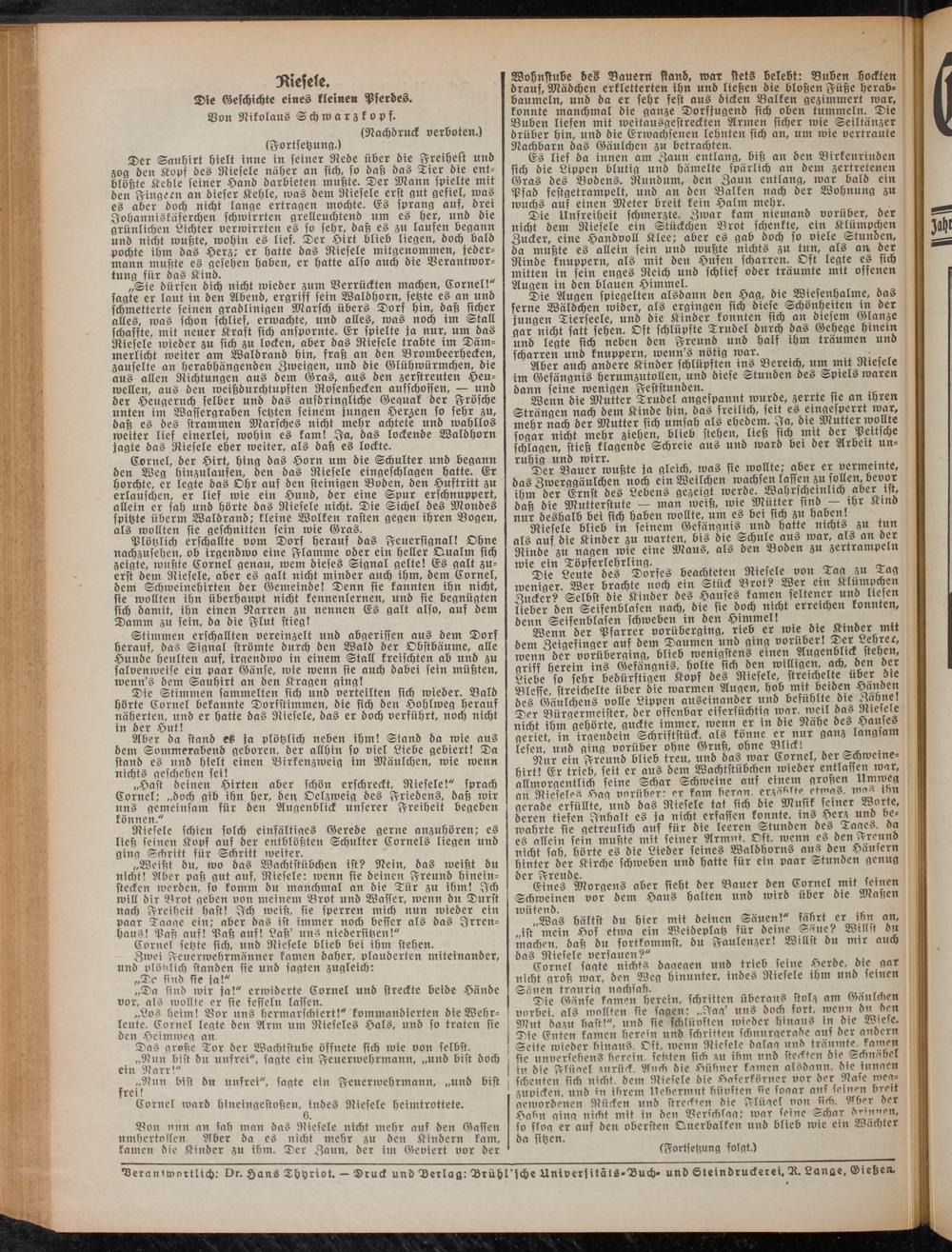 Verantwortlich: Dr. Hans Thyrivt. — Druck und Verlag: Brühl'sche Universitäts-Buch» und Steindruckerei, R. Lang«, Gießen.
