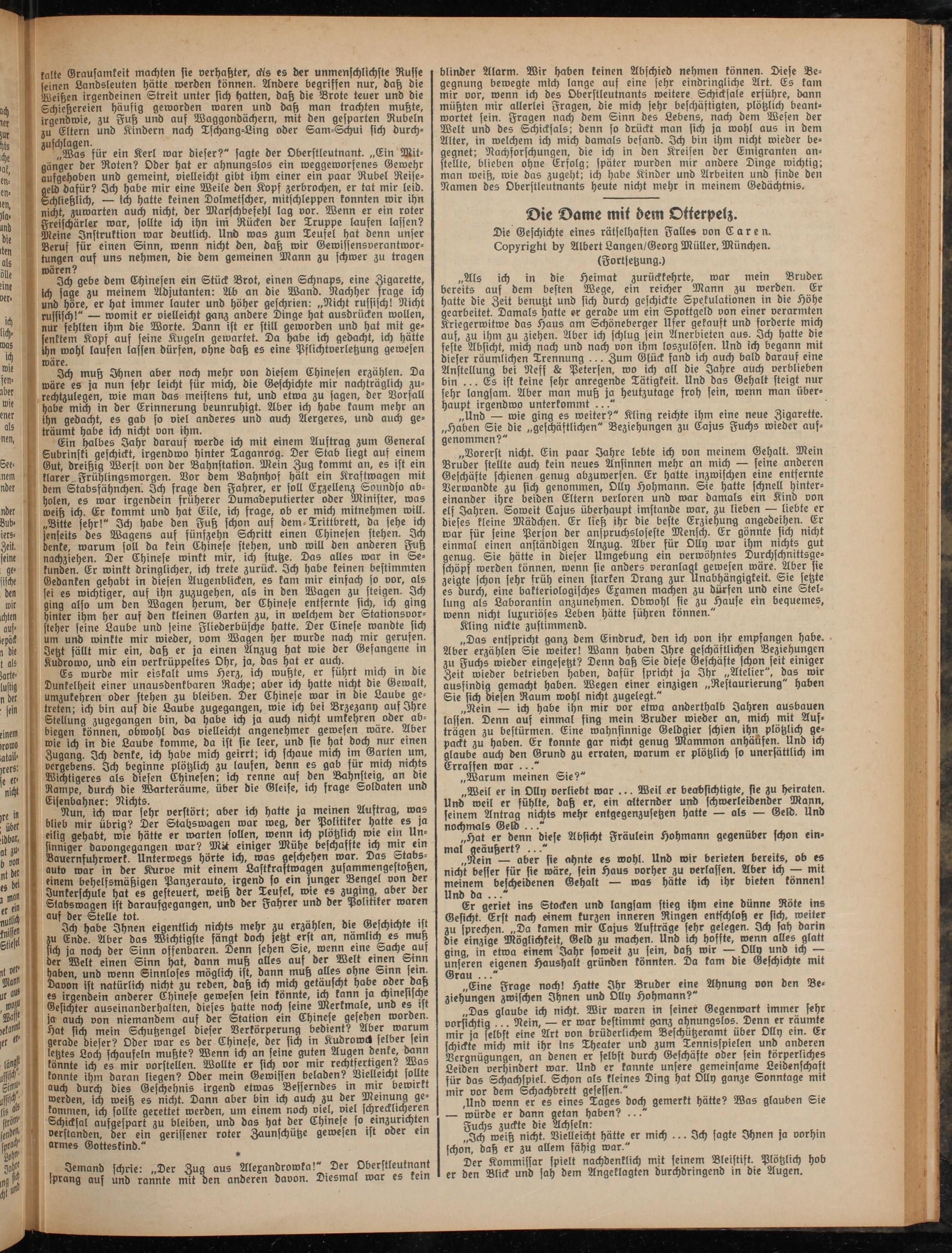 Die Geschichte eines rätselhaften Falles von Caren. Copyright by Albert Langen/Georg Müller, München.
