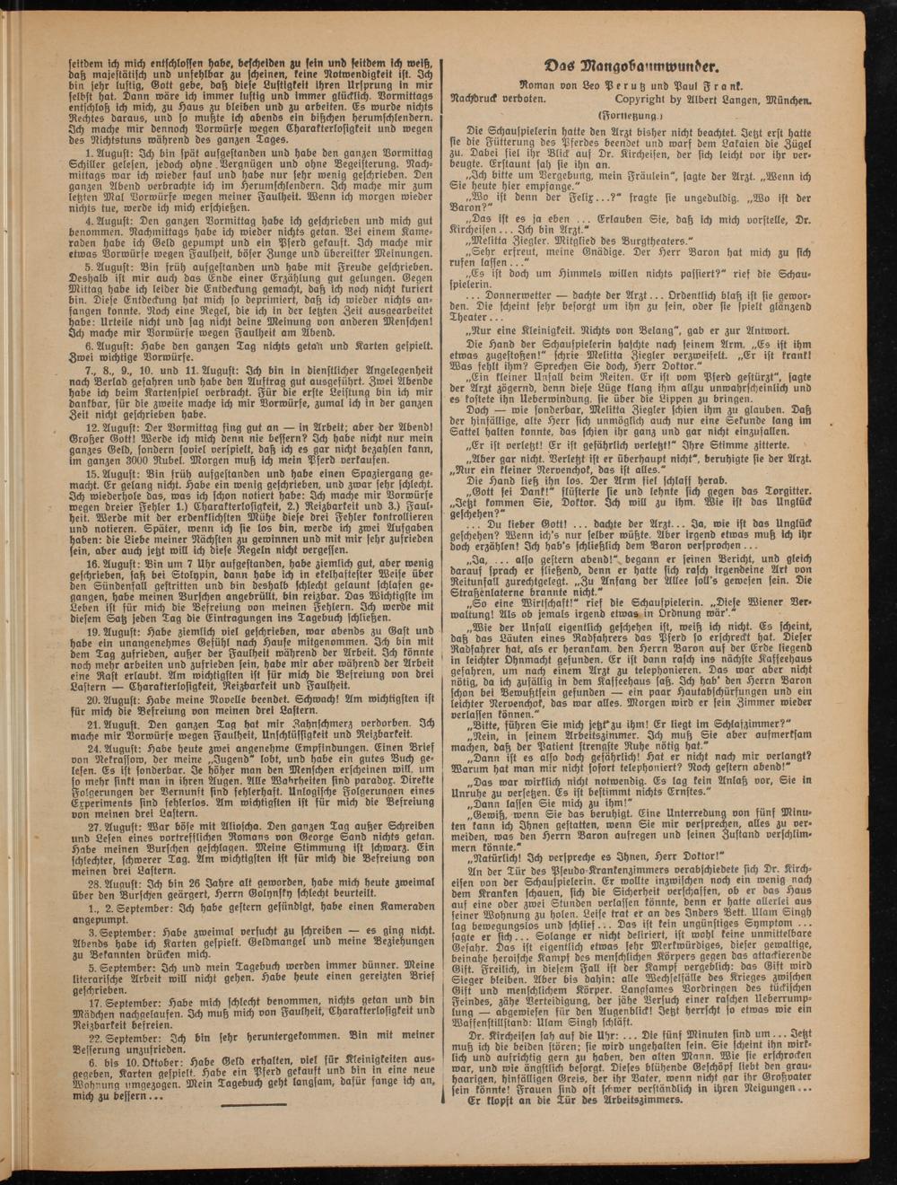 „Wie der Unfall eigentlich geschehen ist, weiß ich nicht. Es scheint, daß das Läuten eines Radfahrers das Pferd so erschreckt hat. Dieser Radsahrer Hai, als er herankam den Herrn Baron auf der Erde liegend 1 in leichter Ohnmacht gesunden. Er ist bann rasch ins nächste Kaffeehaus gefahren, um nach einem Arzt zu telephonieren. Das war aber nicht nötig, da ich zufällig in dem Kaffeehaus faß. Ich hab' den Herrn Baron schon bei Bewußtsein gefunden — ein paar Hautabschürfungen und ein leichter Nervenchok, das war alles. Morgen wird er fein Zimmer wieder verlassen können."
