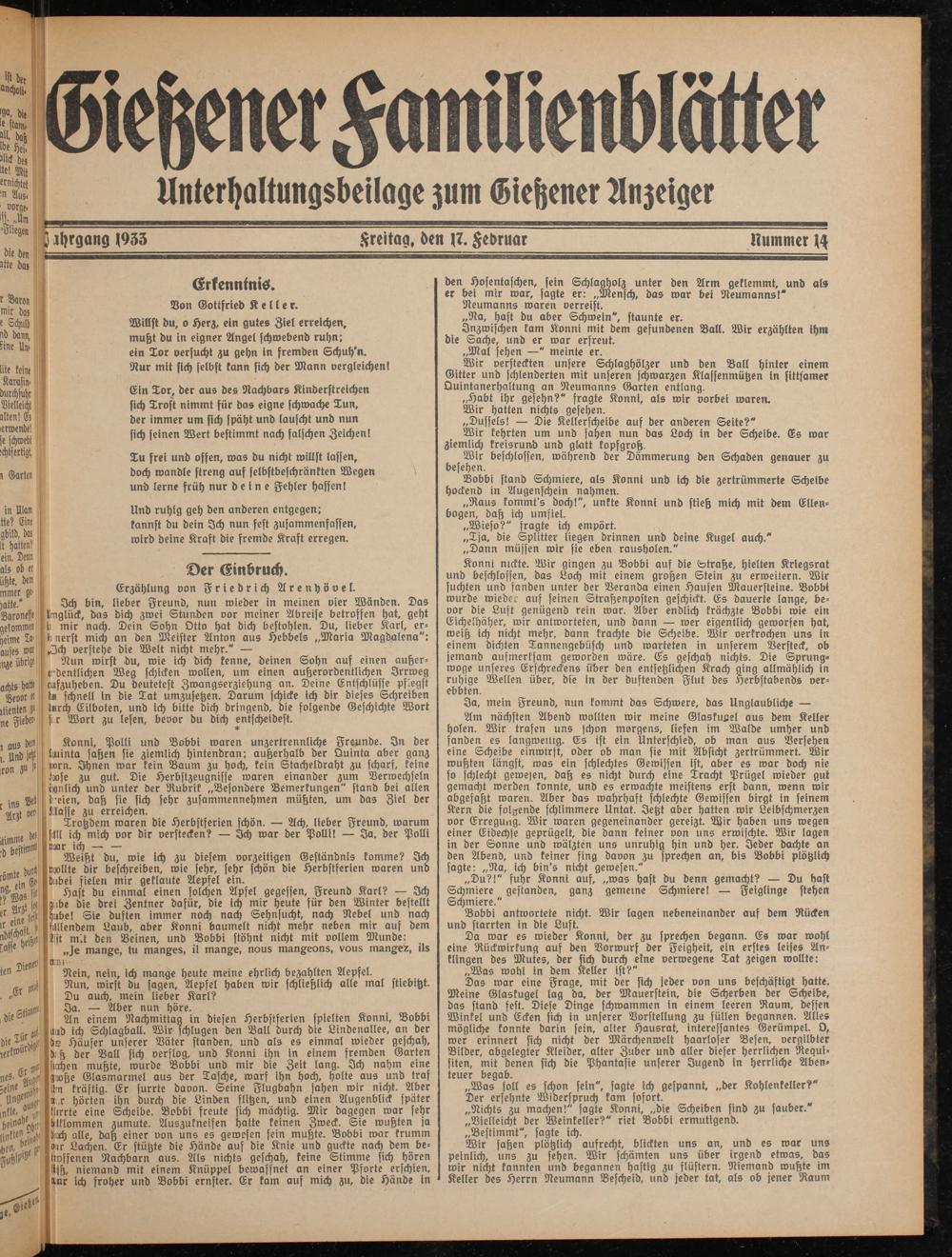 Unterhaltungsbeilage zum Giehener Anzeiger