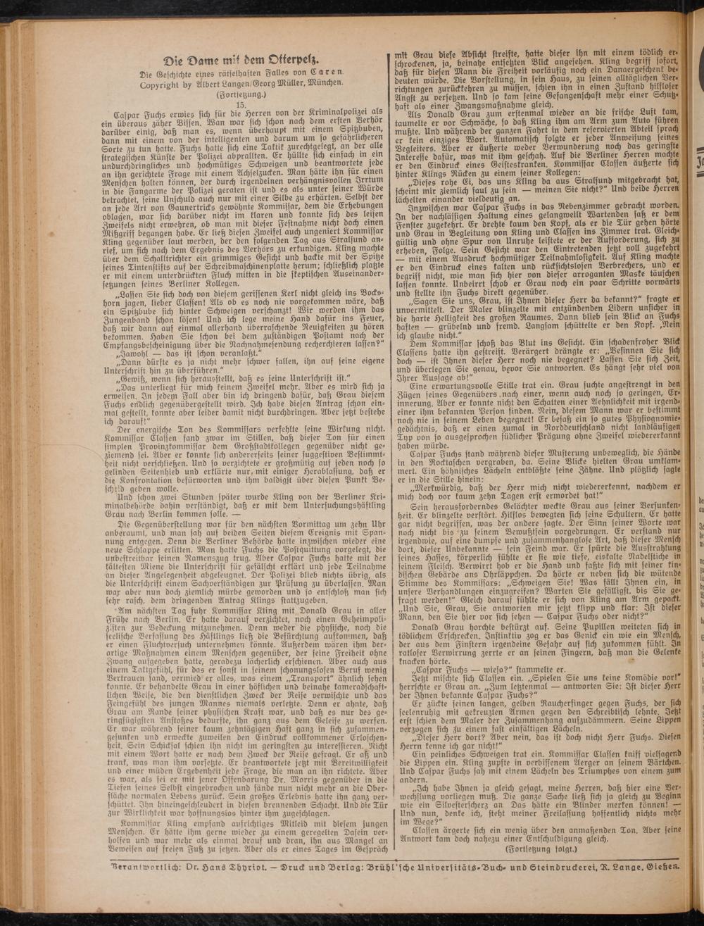 Verantwortlich: vr. HansThyriot. — Druck undDerlag:Drühl'fcheUniverfitäts-Vuch. undSteindrucker ei, D. Lange,Gießen.