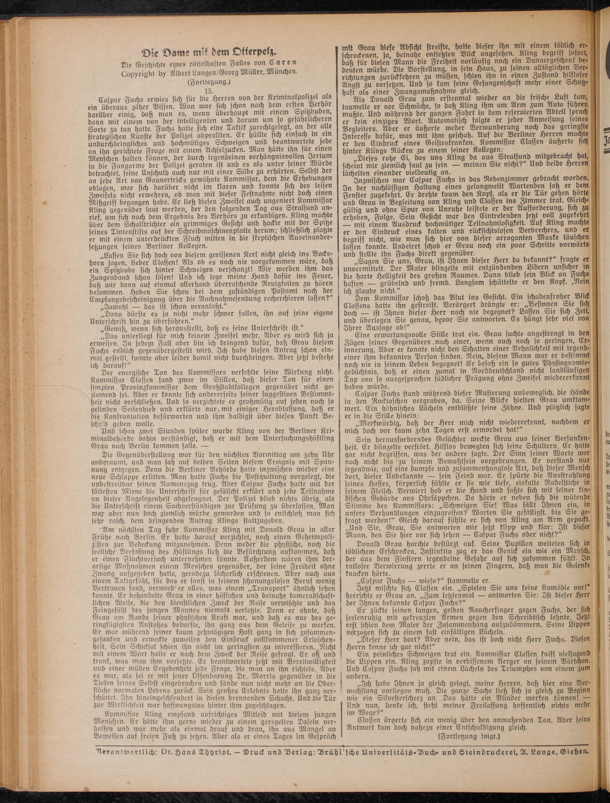 Die Geschichte eines rätselhaften Falles von Caren Copyright by Albert Langen/Georg Müller, München. (Fortsetzung.)