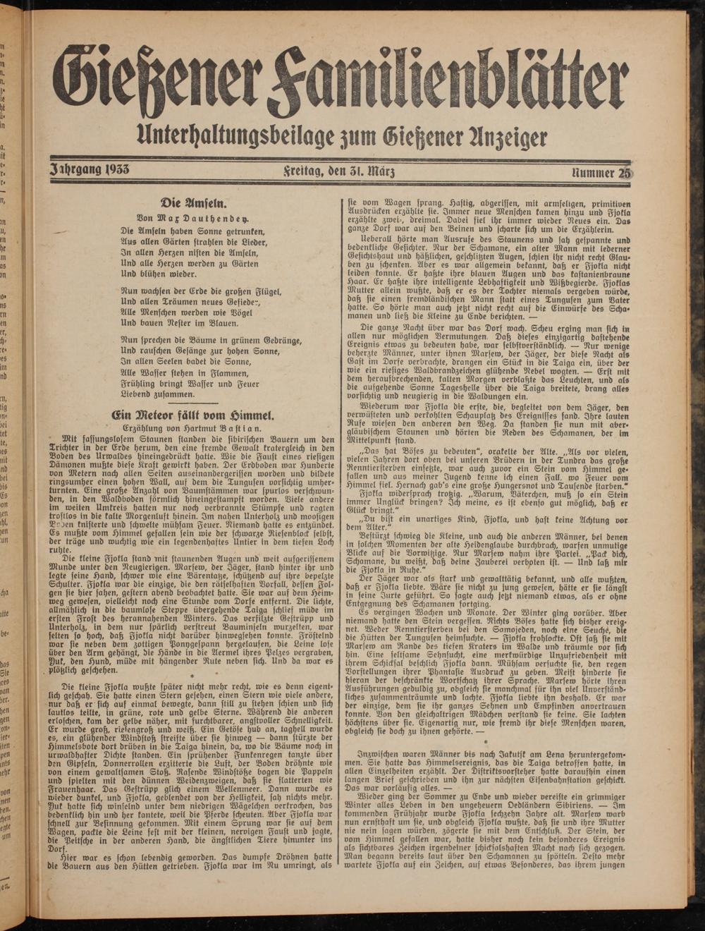Unterhaltungsbeilage zum Gießener Anzeiger
