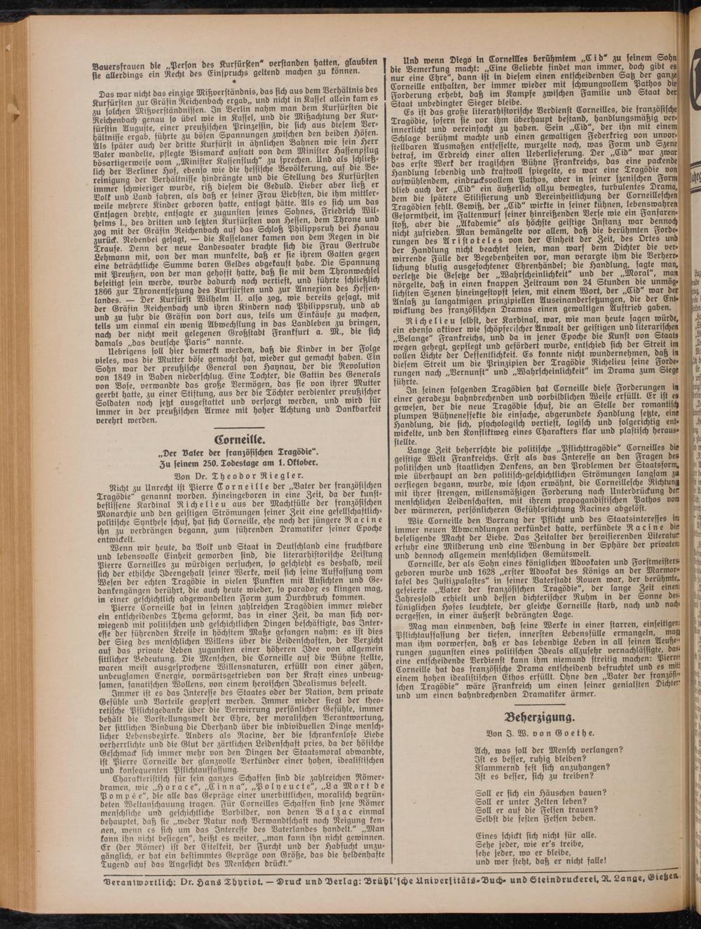 -verantwortlich: Dr. Hans Thyriot. - Druck und Derlag: Brühl sche Universitäts-Duch. und Steindruckerei. R. Lange, Dietzen.