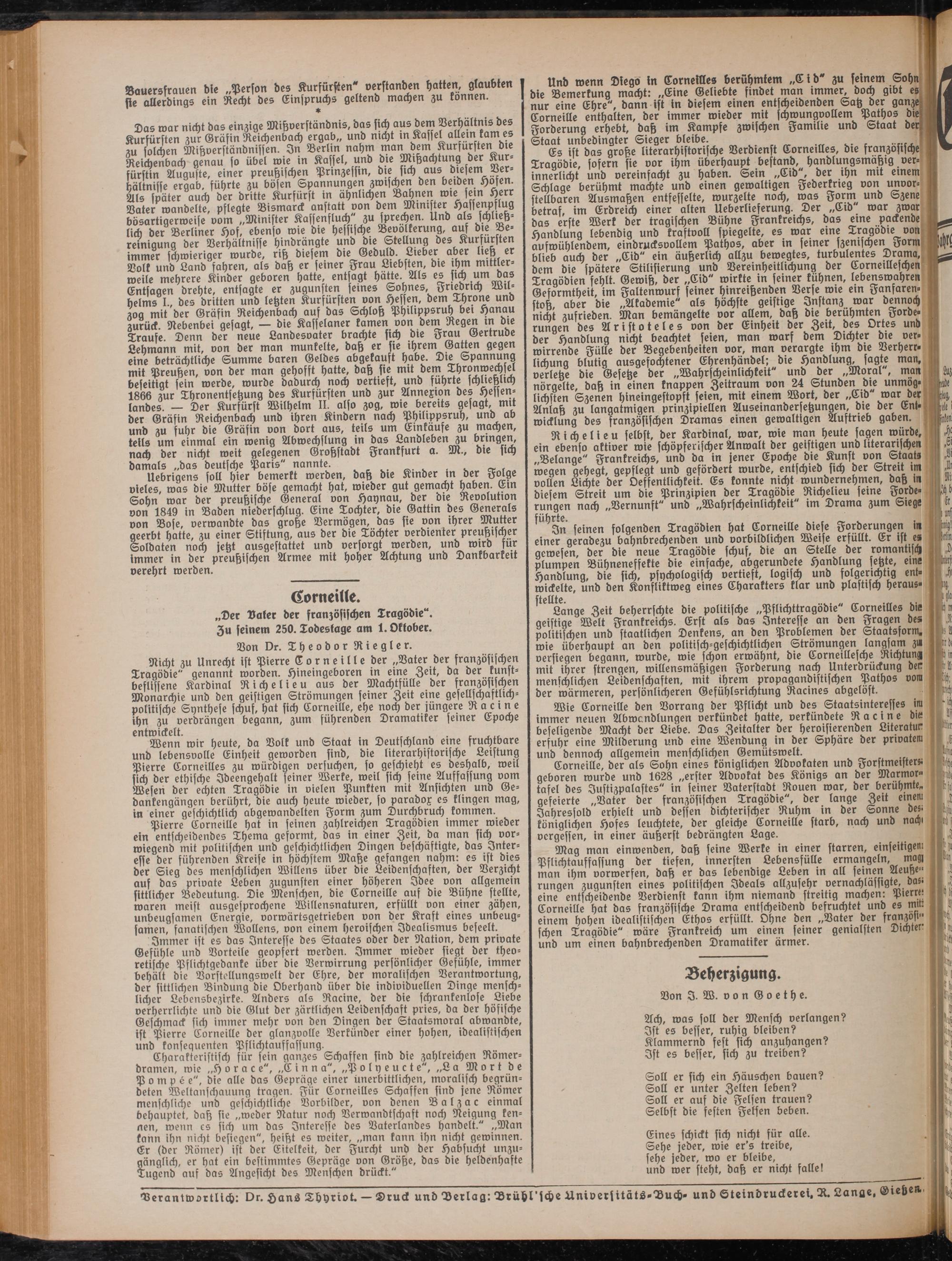 „Der Vater der französischen Tragödie". Zu seinem 250. Todestage am 1. Oktober.