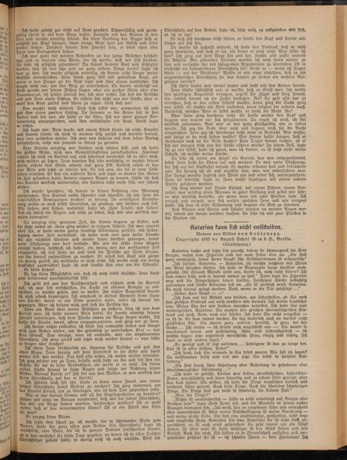 „Nichts ist unabänberlid) — sollte es nicht unbebingt auf Biegen ober Brechen sein!" sagte Lorb Peter fest, unb bie Muskeln in seinen vollen Wangen bewegten sich. „Ich weiß, bas es ungeheuer kühn unb anmaßenb ober unverschämt ist. Aber meine Entschulbigung ist meine Verehrung — unb meine große Liebe. Sie sinb eine unabhängige, großartige, nicht enge unb ängstliche Frau. Bebenken Sie bas, Katarina! Es ist nicht bloß unverschämt, es ist auch ernst gesprochen. Es geht immer um ein Stück Leben: Je älter man ist, befto wichtiger ist bas Stück Leben unb sein Verlust. Auch für mich. Sie fällten es in Freundschaft auffaffen und vorurteilslos prüfen! Es ist — ich schwöre Ihnen — kein Zynismus! Ich