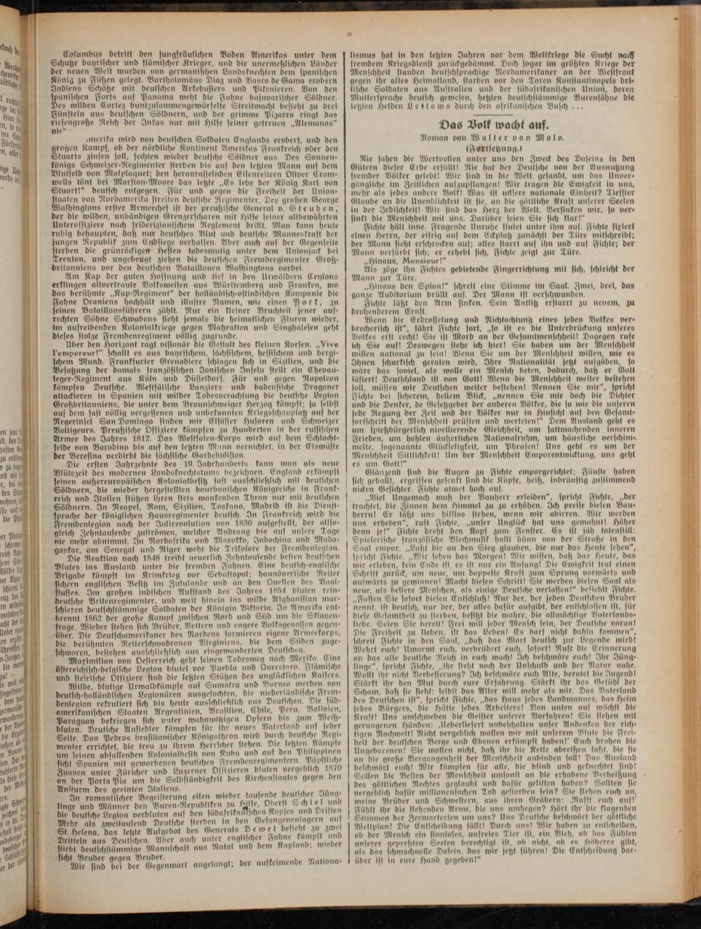 lismus hat In den letzten Jahren vor dem Weltkriege die Sucht nach frembem Kriegsdienst zurückgedämmt. Doch sogar hn größten Kriege der Menschheit standen beutsihsprachige Nordamerikaner an der Westfront gegen il>r alte» Heimatland, starben vor den Toren Konstantinopel» brt« tische Soldaten an» Australien und der südafrikanischen Union, bereu Muttersprache brutsch gewesen, hetzten beutschstämmige Bnrensöhne die letzten Helden Leklow» durch den asrikonifcheu Busch...