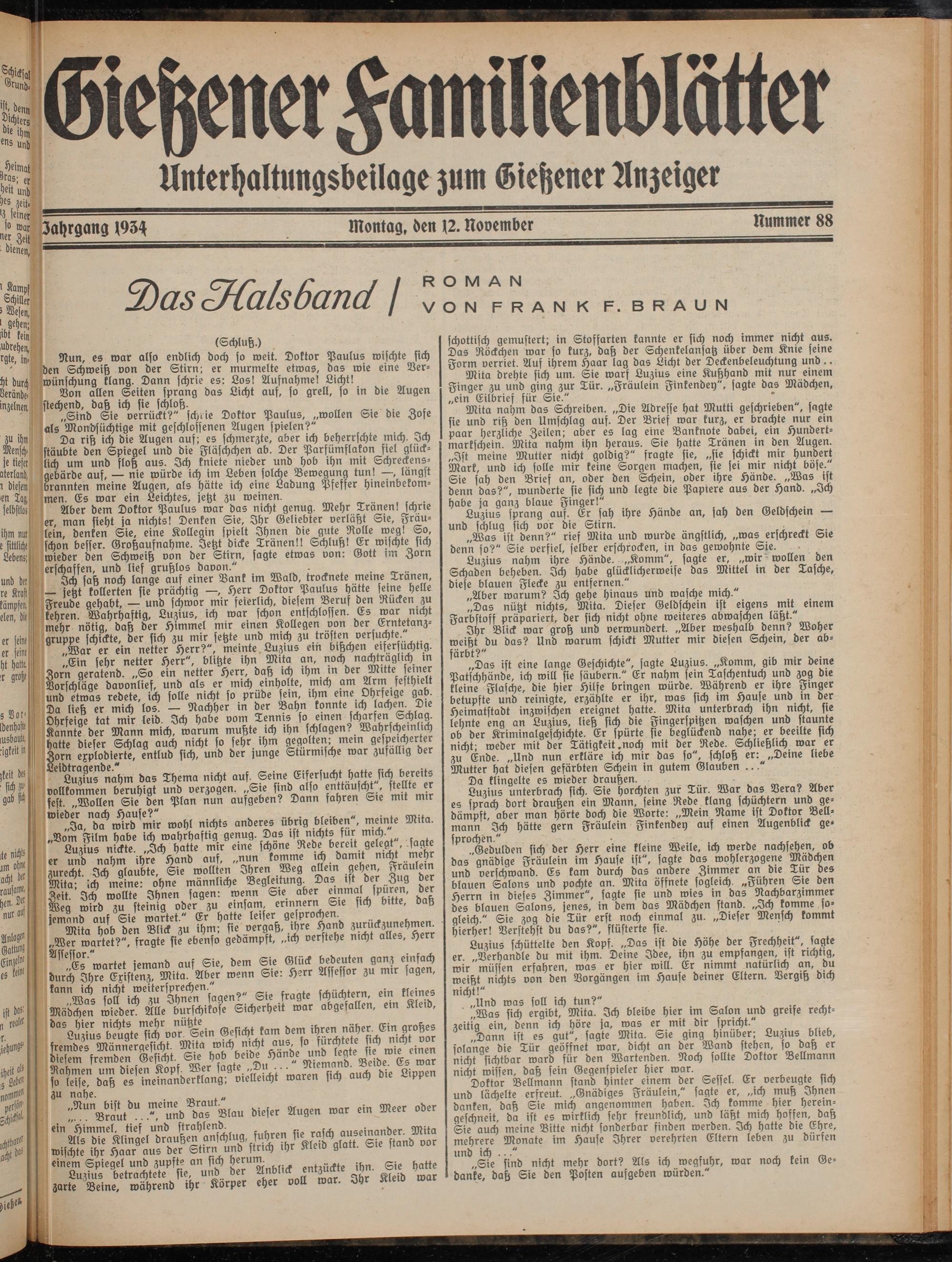 Jahrgang 193^ Montag, den 12. November Kummer 88