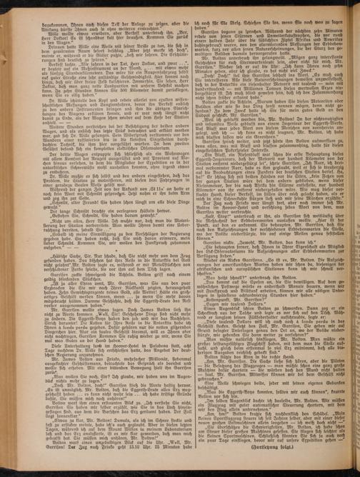 „Im selben Augenblick dachte ich dasselbe, Mr. Bolton. Wir müßen ein Flugzeug mit guter automatischer Steuerung chartern, mit bem wir ben Flug allein unternehmen."