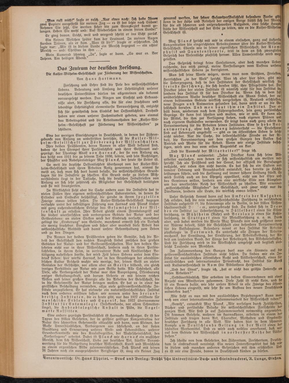 'Verantwortlich: Dr. Hans Thyriot. — Druck und Verlag: Brühi'fche Univers itäts-Duch- und Eteindruckerei, R. Lange, Giebel»