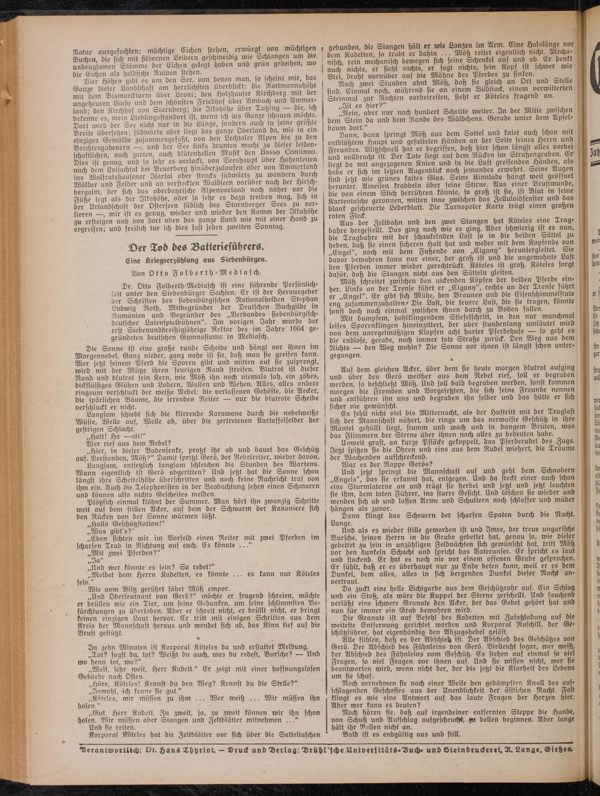 'verantwortlich: l)r. Hans Lhyriot. — Druck undVerlag:Brühl'scheUniversitäts-Buch- undStetndruckerei. R. Lange, Gießen.
