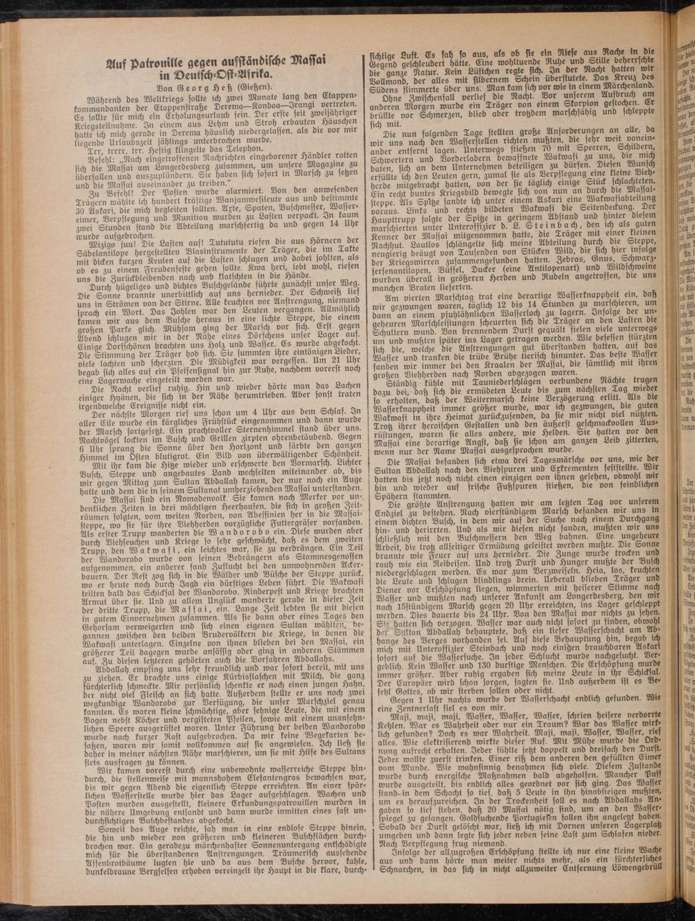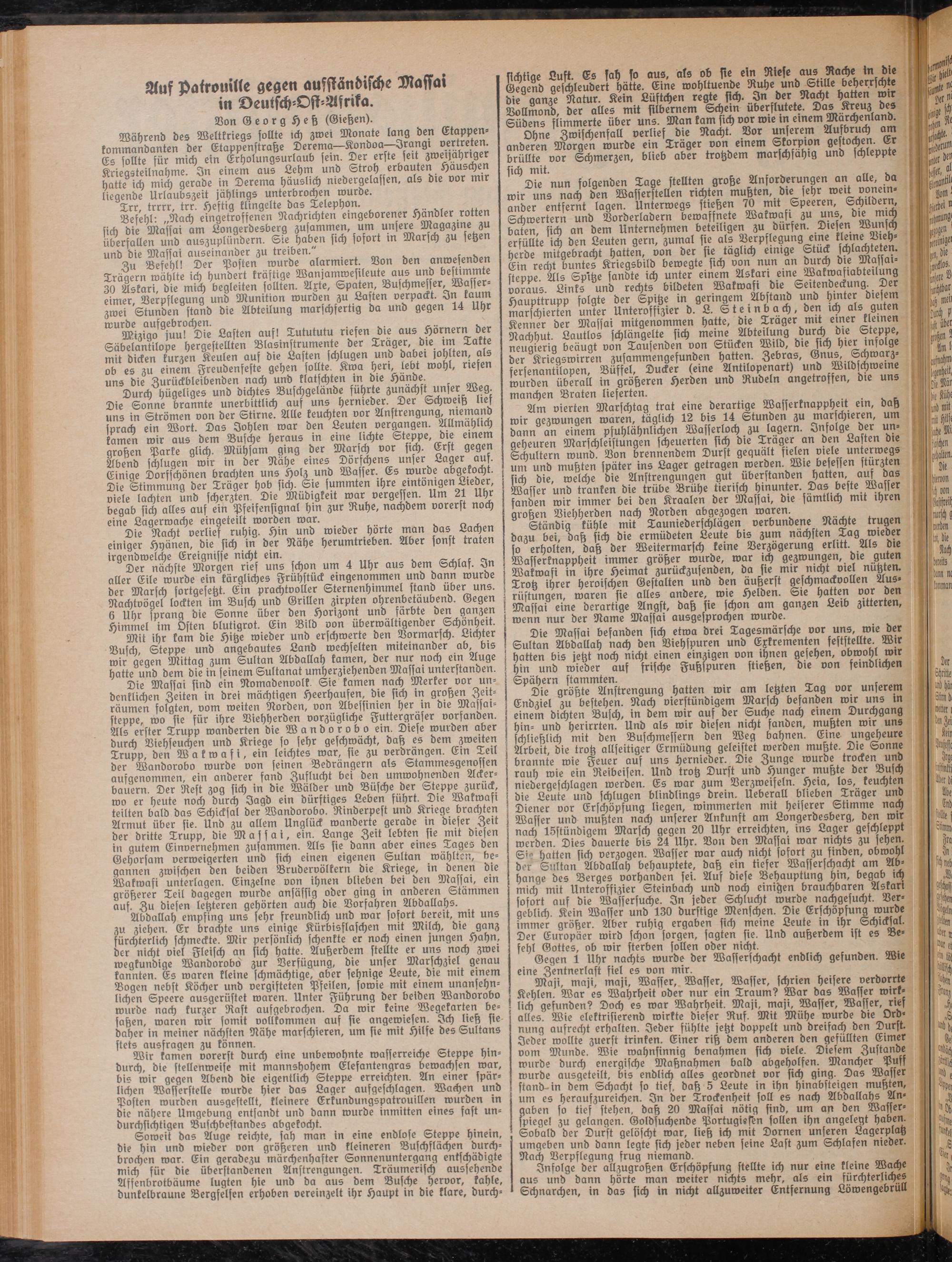 Befehl: „Nach eingetroffenen Nachrichten eingeborener Händler rotten sich bie Massai am tiongerbesberg zusammen, um unsere Magazine zu überfallen und auszuplündern. Sie haben sich sofort m Marsch zu setzen und die Massai auseinander zu treiben."