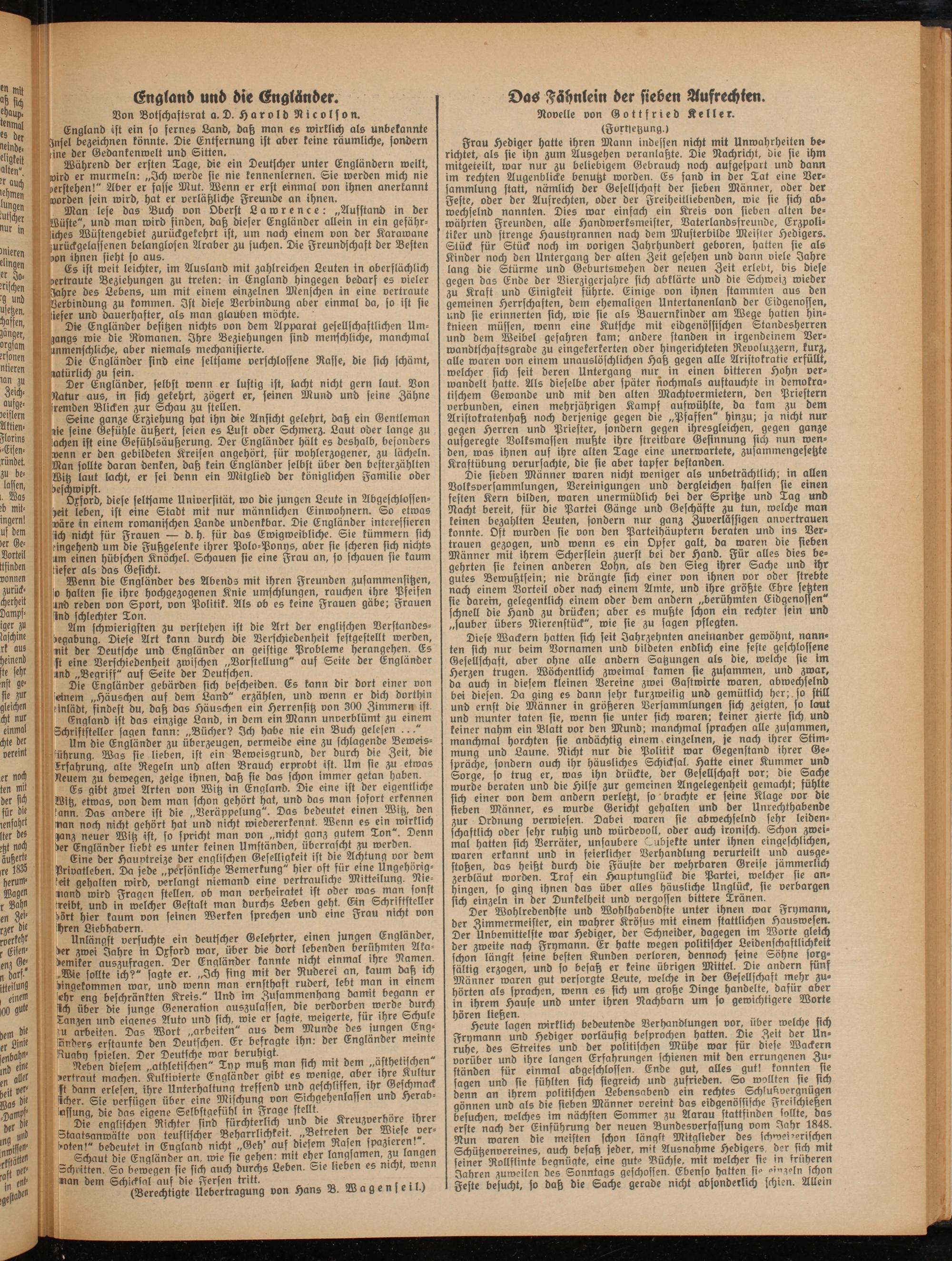 Oxford, diese seltsame Universität, wo die jungen Leute in Abgeschlossenheit leben, ist eine Stabt mit nur männlichen Einwohnern. So etwas wäre in einem romanischen Lande undenkbar. Die Engländer interessieren sich nicht für Frauen — d. h für das Ewigweibliche. Sie kümmern sich eingehend um die Fußgelenke ihrer Polo-Ponys, aber sie scheren sich nichts nm einen hübschen Knöchel. Schauen sie eine Frau an, so schauen sie kaum tiefer als das Gesicht.