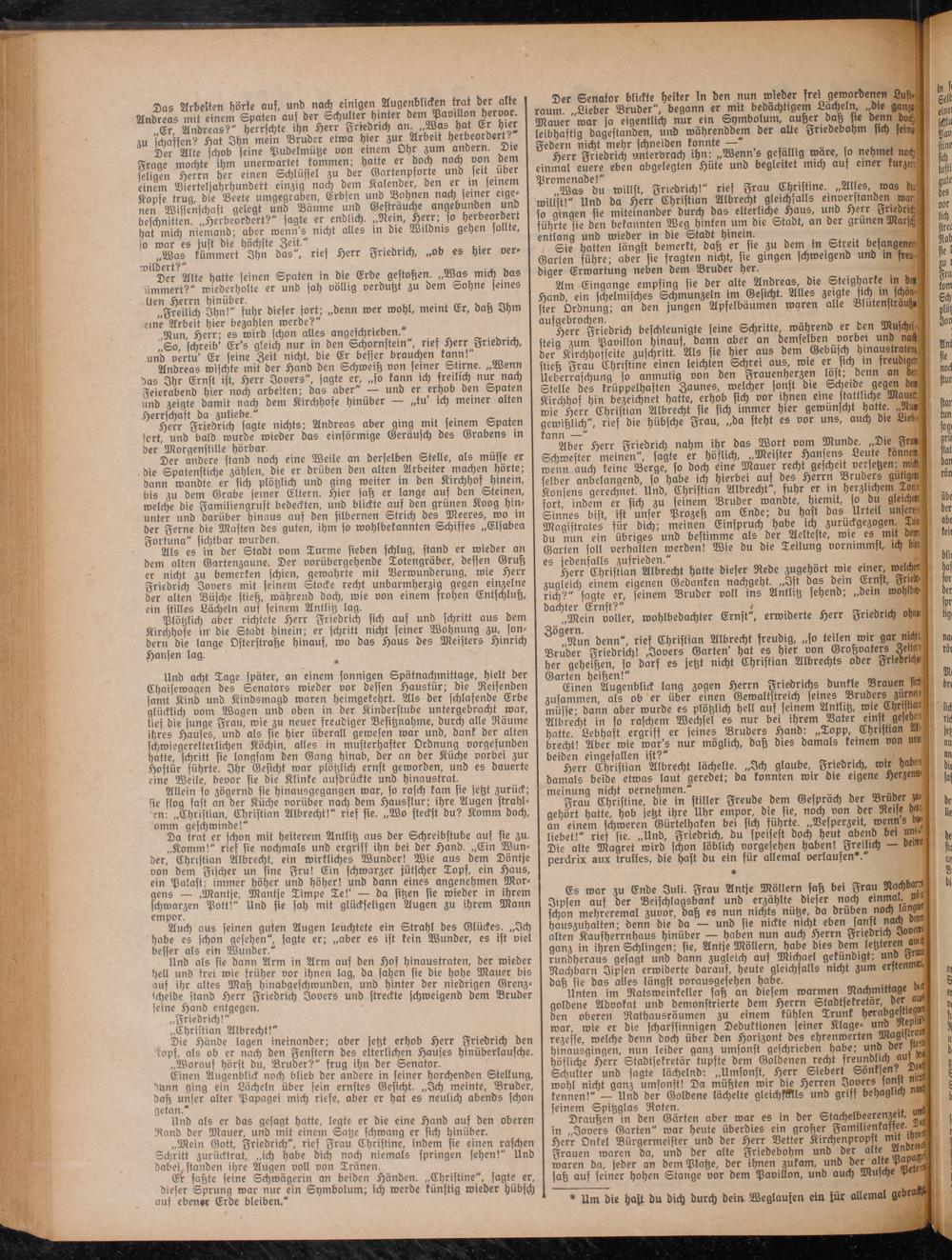 Der Senator blickte hester (n den nun wieder frei gewordenen Luftraum Lieber Bruder", begann er mit bedächtigem Lächeln, „die ganze Mauer "war ja eigentlich nur ein Symbolum, außer daß sie denn doch leibhaftig dagestanden, und währenddem der alte Fnededohm sich [eine Federn nicht mehr schneiden konnte —" .. . . . J