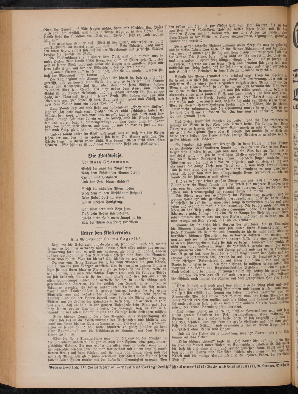 Verantwortlich: Dr. Hans Thyriot. - Druck und Verlag: Drühl'fche LlniversitätS.Buch. und Steindruckerei. A. Lange, Gießert