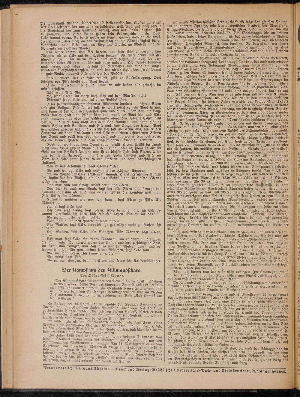 tveraniwortlich. Dr. Hans Thyriot. Druck und Verlag: Vrühl'fche Universitäts-Vuch. und Steindruckerei. R. Lange. Gießen.