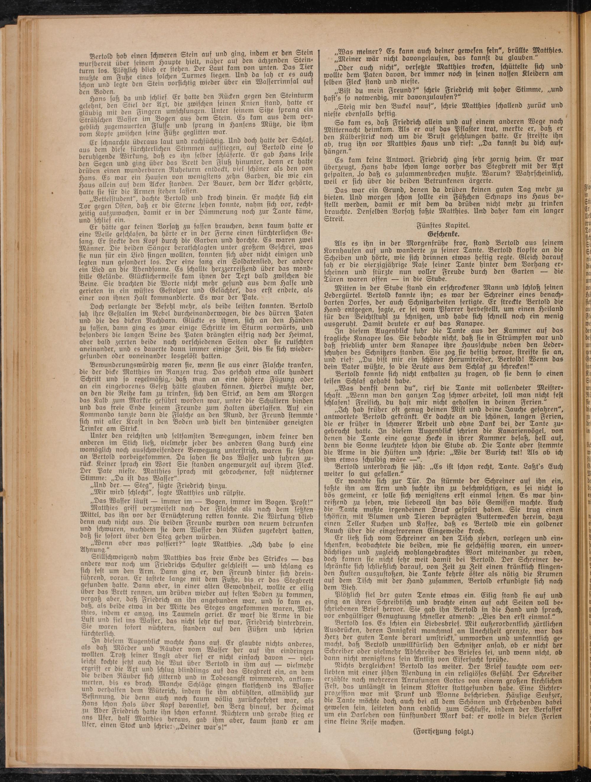 „Was denkst denn du", rief die Tante mit vollendeter Meisterschaft. „Wenn man den ganzen Tag schwer arbeitet, soll man nicht fest schlafen! Freilich, du hast mir nicht geholfen in Heinen Ferien."