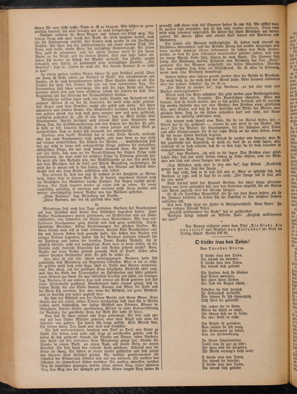Der Roman erscheint unter dem Titel „Die Liede, die uns rettet" von Walther von Hollander als Buch im Verlag Scherl Berlin SW 68.