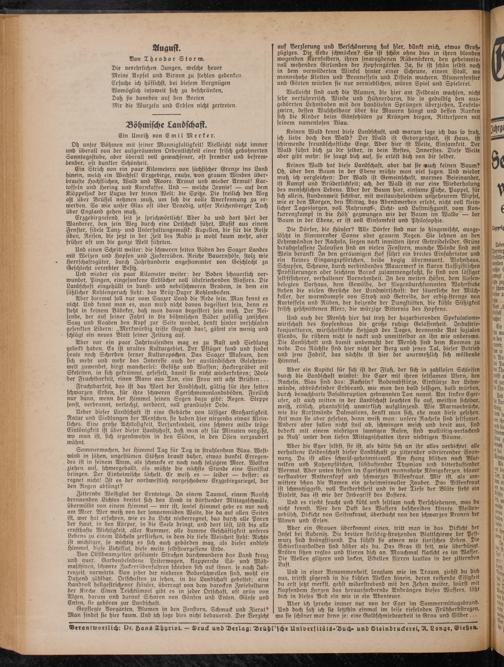 Oh unser Böhmen mit seiner Mannigfaltigkeit! Vielleicht nicht immer und überall von der aufgeräumten Ordentlichkeit einer frifch gebohnerten Sonntagsstube, aber überall voll gewachsener, oft fremder und befremdender, oft dunkler Schönheit.