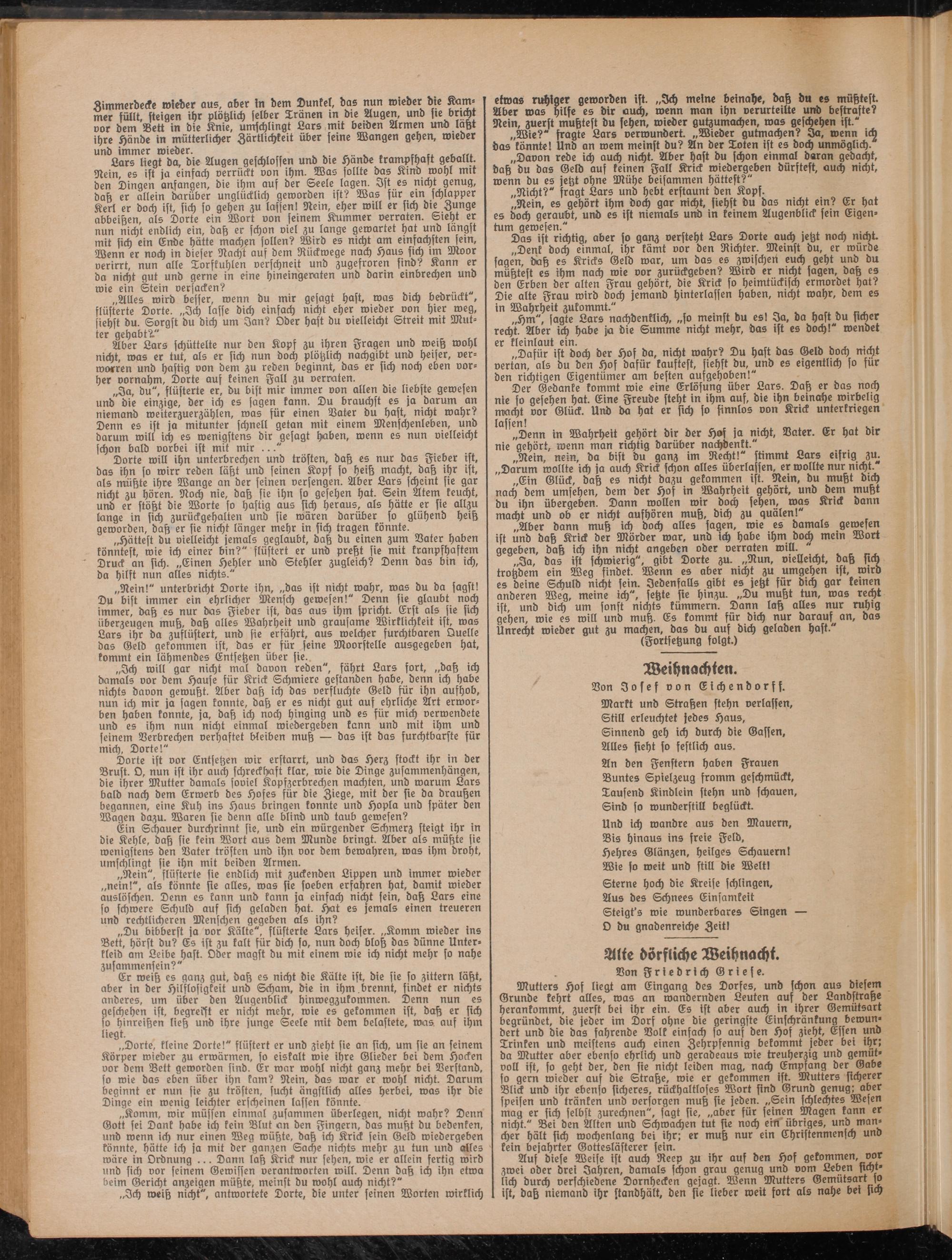 „Ein Glück, daß es nicht dazu gekommen ist. Nein, du muht dich nach dem umsehen, dem der Hof in Wahrheit gehört, und dem muht du ihn übergeben. Dann wollen wir doch sehen, was Krick bann macht unb ob er nicht aufhören muh, bich zu quälen!"