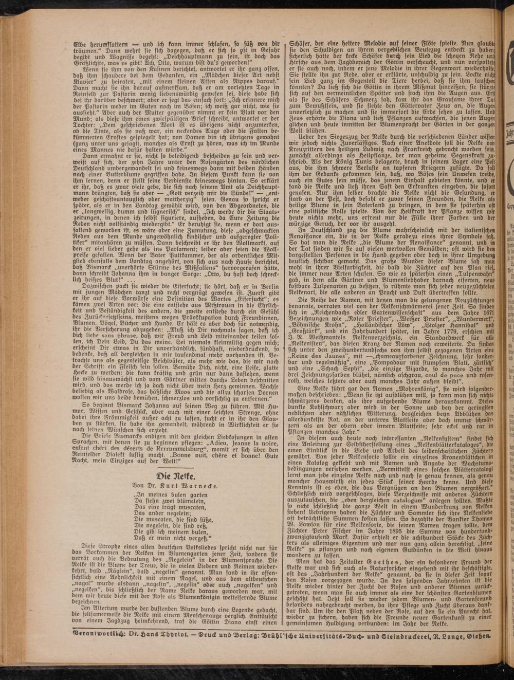 Siefe Strophe eines alten deutschen Volksliedes spricht nicht nur für bas Vorkommen ber Nelken im ^Blumengarten jener Zeil, fonbern sie m rr»°* .rOli.$ £je Bedeutung bes „Negelein" in der Blumenfprache. Die .Helle ist die Blume der Treue, die in vielen Liedern und Reimen wieber- kehrl bald „Näglein", bald „negelin" genannt. Man sand in ihr offensichtlich^ eine Aehnlichkeit mit einem Nagel, unb aus bem altdeutschen „nagal mürbe alsbann „nagelin“, „negelin" ober auch „nagelten" unb ,,regelten , bis schließlich ber Name Nelke baraus geworben war, mit dem wir heute biefe mit ber Rose als Blumenkönigin roetteifernbe Blume bezeichnen.