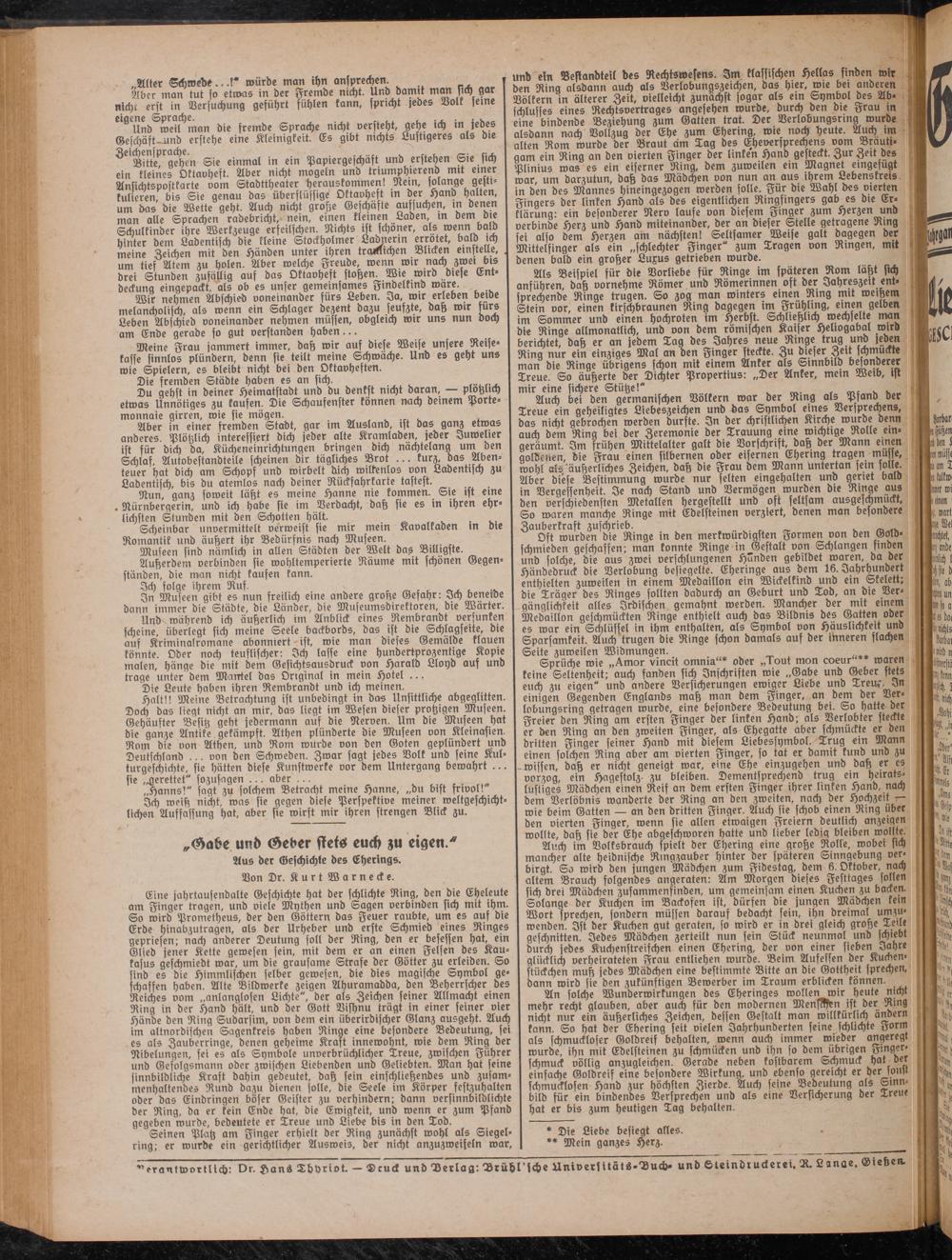 verantwortlich: Dr. Kans Thyriot. - Dcucl und Verlag: Brühl sche Universitäts-Buch. und Steindruckerei. R. Lange,Giehen.
