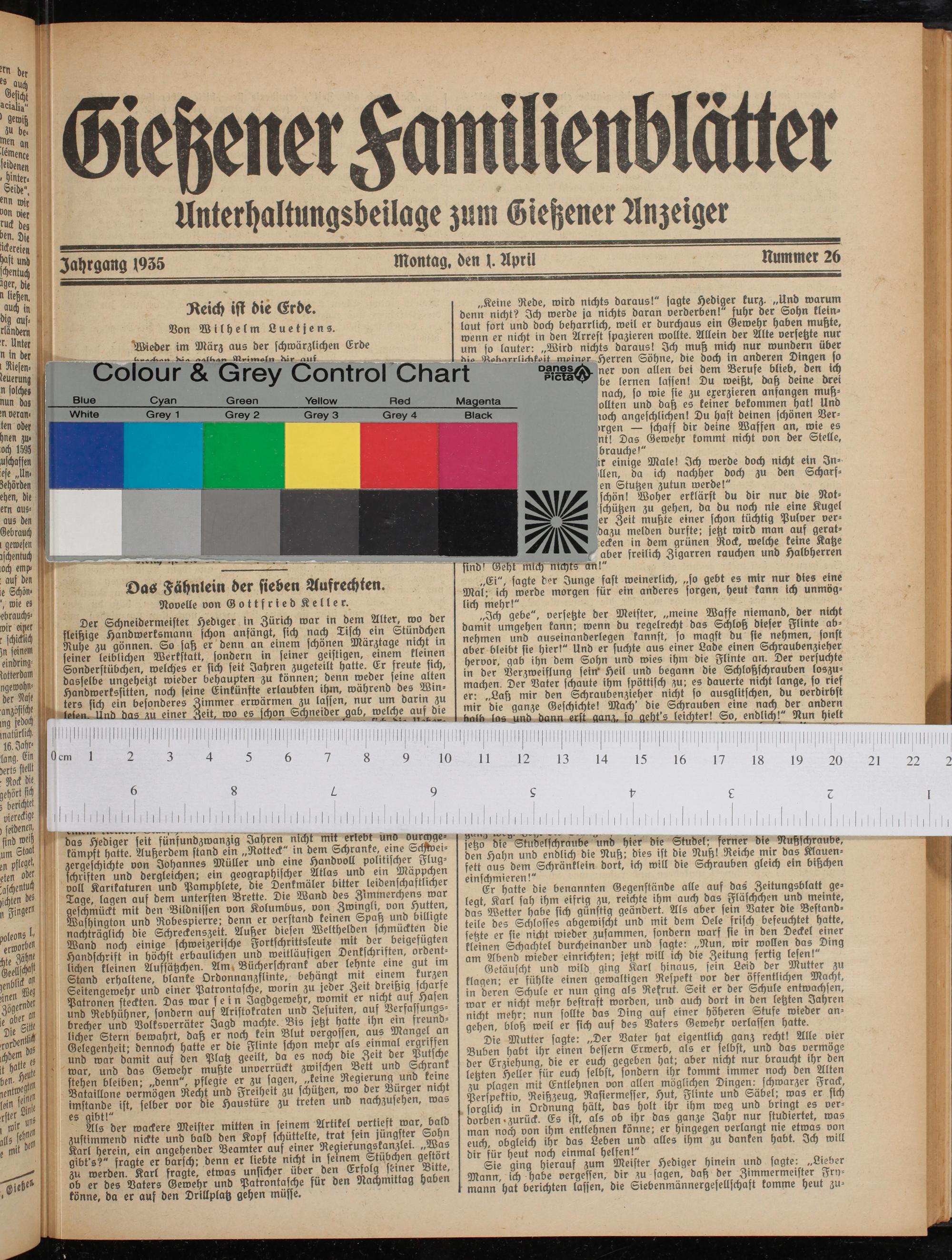 I däs"Hedi'ge'r"feit fünfundzwanzig Jahren nicht mit erlebt unb ourmge- kämpft hatte. Außerdem stand ein „Rotteck in dem Schranke eine Schweizergeschichte von Johannes Müller und eine Handvoll politischer FUmschriften und dergleichen: ein geographischer Atlas und «'" Mäppchen voll Karikaturen und Pamphlete, die Denkmäler bitter leiden^aftlicher Tage, lagen auf dem untersten Brette. Die Wand des Zimmerchens war geschmückt mit den Bildnissen von Kolumbus, von Zwingli von^Huhen Washington und Robespierre: denn er verstand kernen Spaß und billigte nachträglich die Schreckenszeit. Außer diesen Welthelden schmückten die Wand noch einige schweizerische Fortschrittsleute mit ber beigefugten Hanbschrift in höchst erbaulichen unb weitläufigen Denkschriften, orbent- lichen kleinen Aufsätzchen. Am. Bücherschrank aber lehnte eine gut im Stanb erhaltene, blanke Ordonnanzflinte, behängt mit einem kurzen Seitengewehr unb einer Patrontasche, worin zu >eder Zeit dreißig scharfe Patronen steckten. Das war s e i n Jagdgewehr, womit er nlttt auf SJafen unb Rebhühner, (onbern auf Aristokraten und.Jesuiten, °us Aerfasungs- brecher unb Volksverräter Jagd machte. Bis letzt hatte ihn em freu lieber Stern bewahrt, daß er noch kein Blut vergossen, aus Mangel an Gelegenheit: dennoch hatte er die Flinte schon mehr <als «rgriffen und war damit auf den Platz geeilt, da es noch d'e Zelt der Patsche ' war, und das Gewehr muhte unverruckt zwischen Bett und Schrank stehen bleiben: „denn", pflegte er zu Jagen, „feine (Regierung unb feine Bataillone vermögen Recht unb Freiheit zu schützen, wo der Burger mcht imstande ist, selber vor die Haustüre zu treten und nachzusehen, was 65 Ins'ber wackere Meister mitten in seinem Artikel vertieft war, bald zustimmend nickte unb bald den Kops schüttelte, trat sein> lungster Sohn Karl herein, ein angehender Beamter auf einer Reglerungskanzlei. „Was gibt's?" fragte er barsch: denn er liebte nicht in seinem Stübchen gestört zu werden. Karl fragte, etwas unsicher über den Erfolg seiner Bitte, ob er des Vaters Gewehr und Patrontasche für den Nachmittag haben tonne, da er auf den Drillplatz gehen müsse.