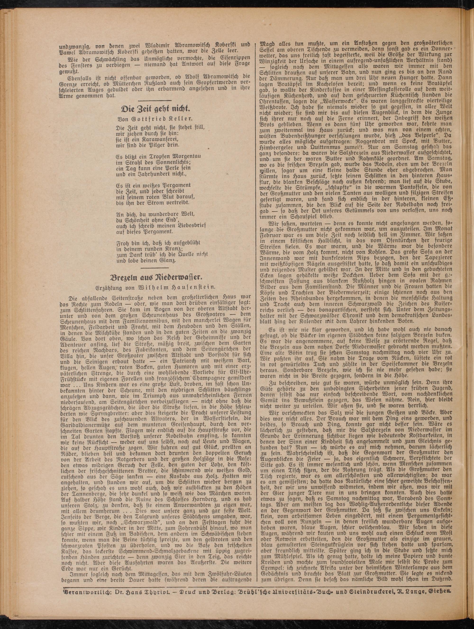 Verantwortlich: l)r. Hans Thvriot. — Druck und Der lag: Brühl'sche Universitäts-Buch- und Steindruckerei, A. Lange, Gießen.