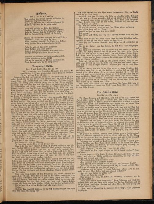 „Nun, bann komm ohne Namen mit!", sagte Johannes unb führte die Hünbin heim. Sie ging auch willig neben ihm. In ber Waldhutte gab er ihr zu fressen. Reissuppe, Knochen unb altes Brot. Sie fraß gierig unb knurrte beim Fressen. ,