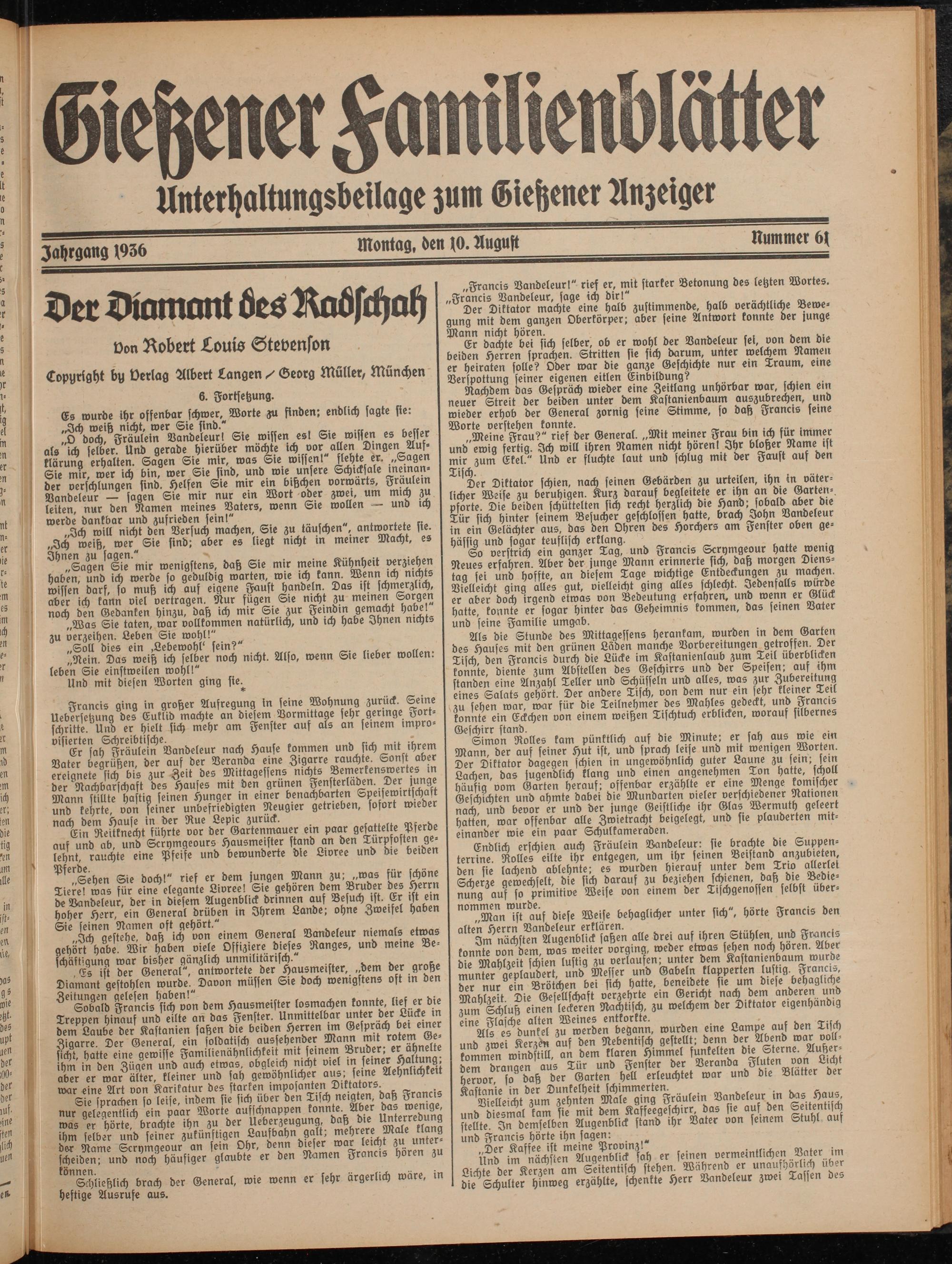 Unterhaltungsbeilage zum Giehener Anzeiger
