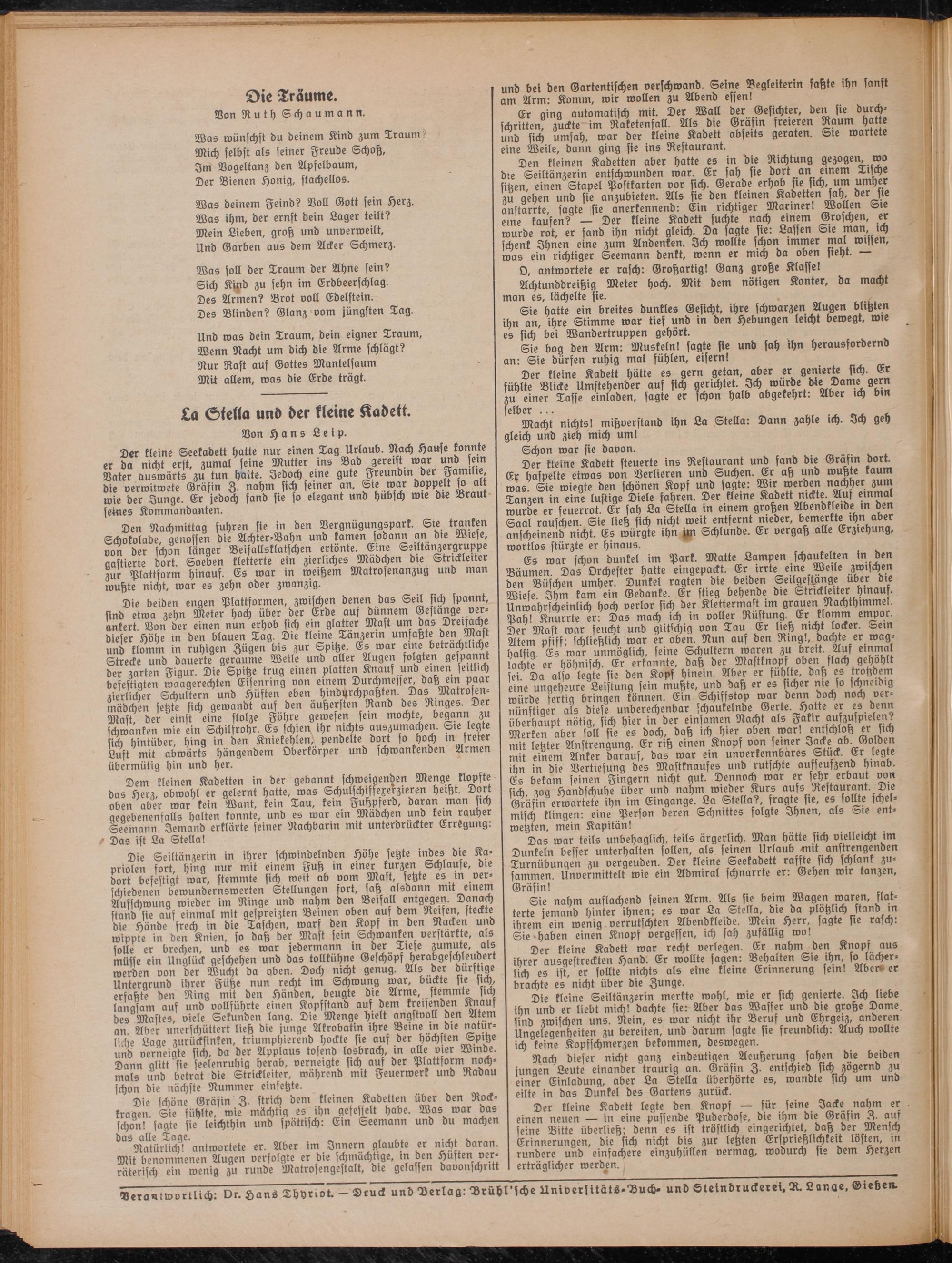 Verantwortlich: l)r. Hans Thyr^t. - Druck und Berlag: Brühl',che Univerfitäts-Buch. und Steindruckerei. R. Lange, Sieben.
