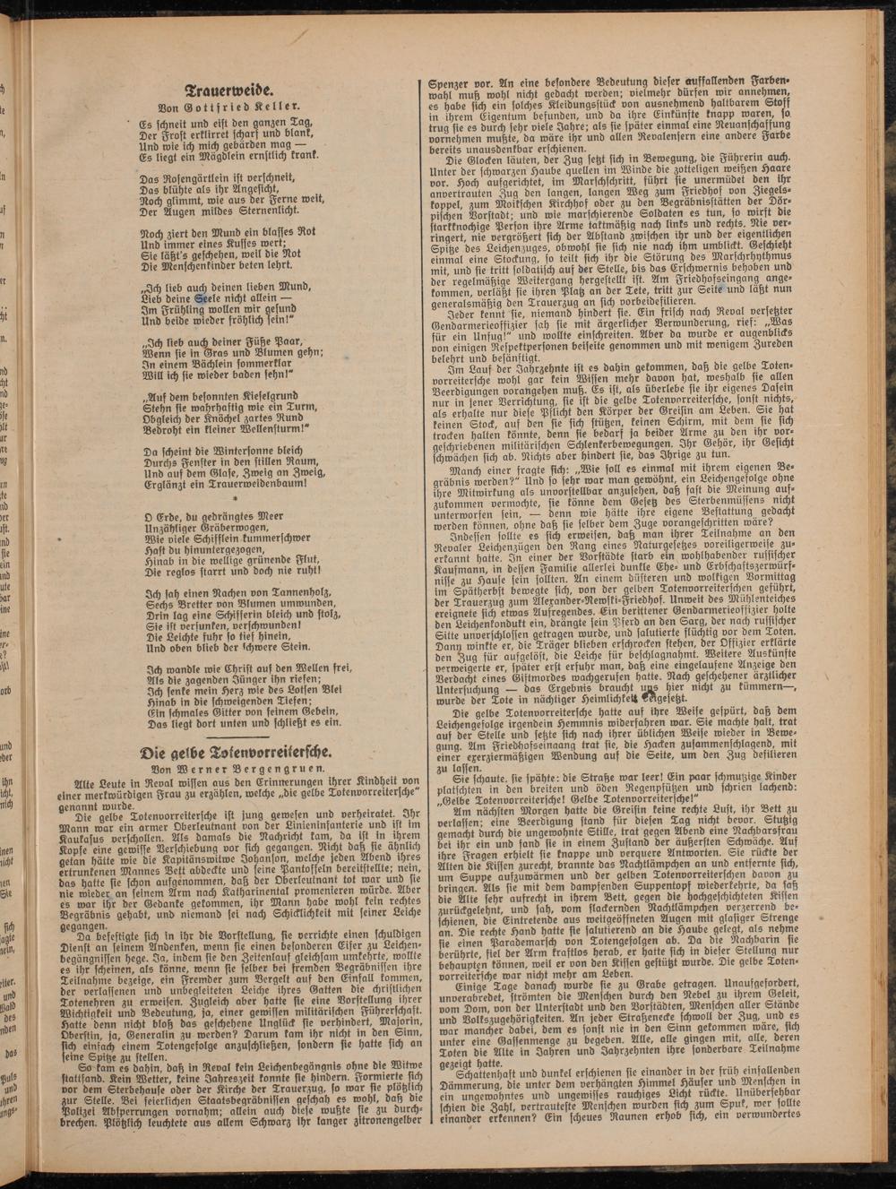 Alte Leute in Reval wissen aus den Erinnerungen ihrer Kindheit von einer merkwürdigen Frau zu erzählen, welche „die gelbe Totenvorreitersche" genannt wurde. , t