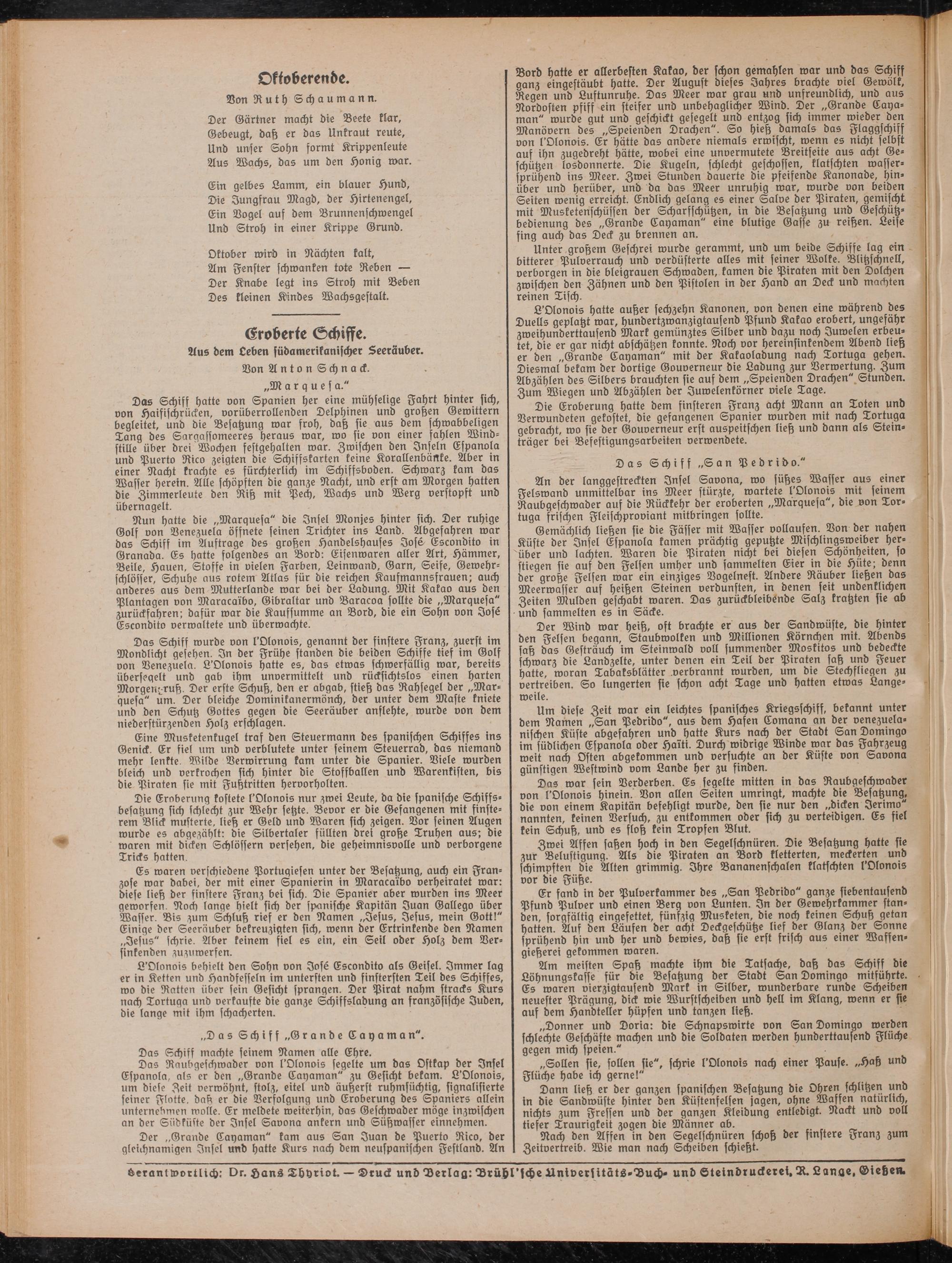 verantwortlich: l)r. HansThyriot.— Druck und Verlag: Vrühl'fche Universitäts-Buch» und Stein dr uckerei. R. Lange, Gießen.