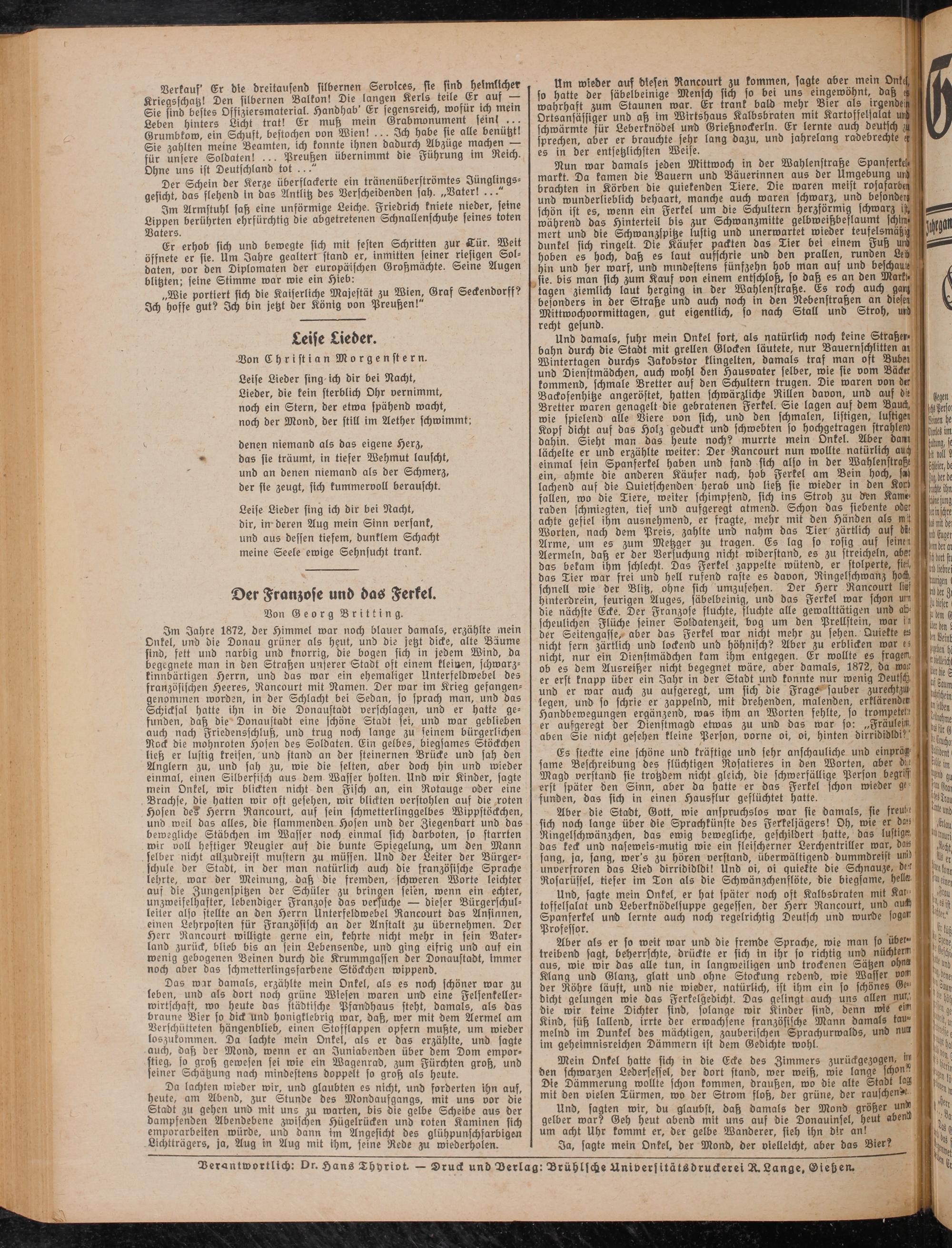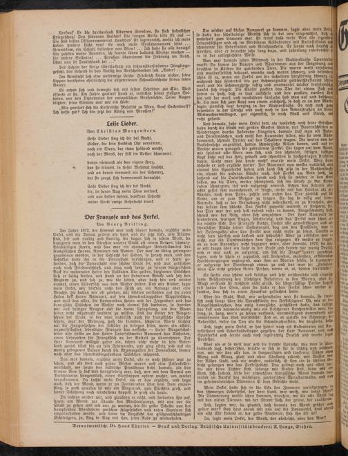 Dernntwortlich: Dr. Hans Thyrivt. — Druck und Derlag: Brüh Ische Universitätsdruckeret 21. Lange, Gießen.