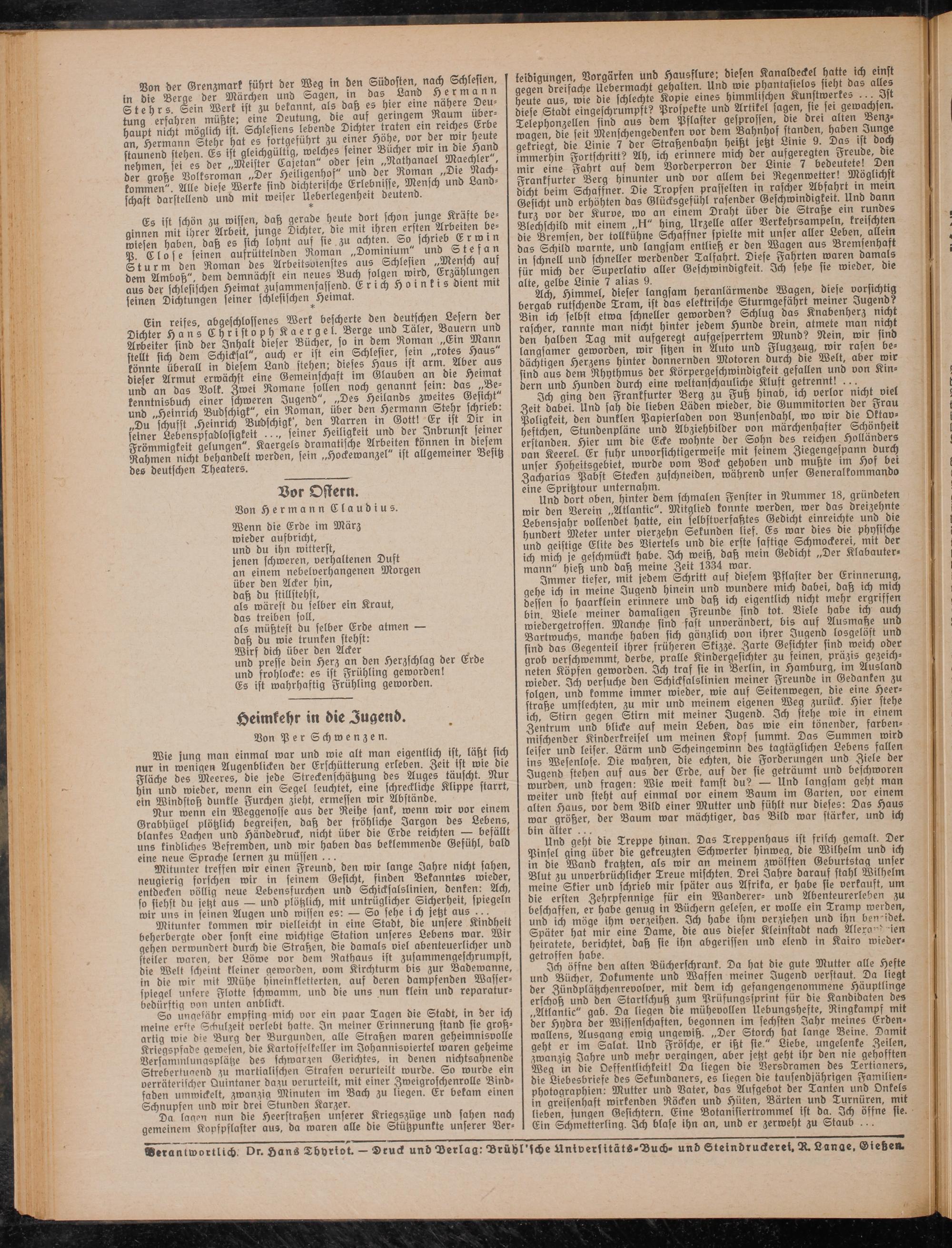 verantwortlich Dr. Hans Thhriot. — Druck und Derlag: Drühl'sche Univerlitäts-Buch» und Steindruckerei, R. Lange, Giebea.