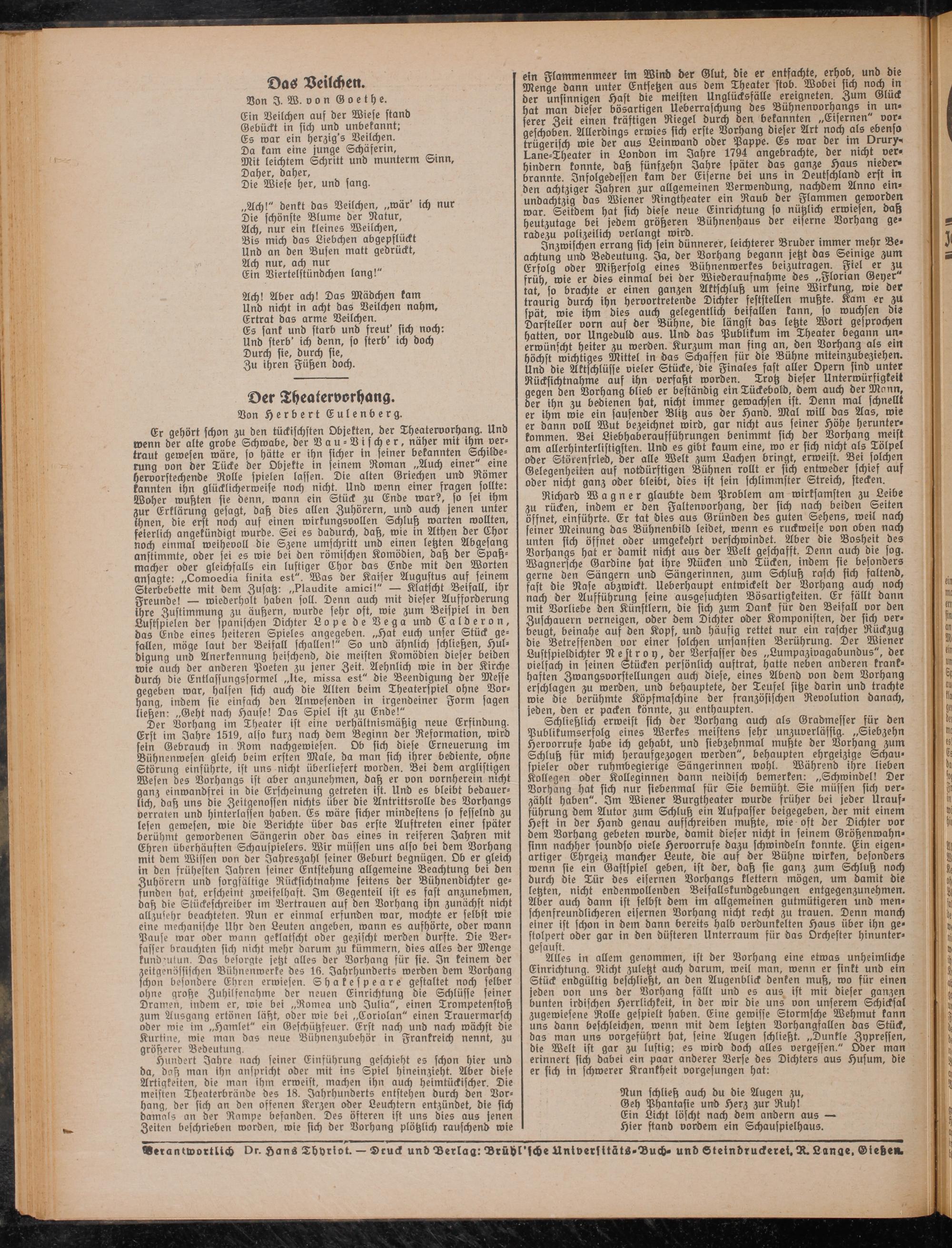 Berantwortlich Dr. Hans Thyriot. — Druck und Verlag: Brühl'sche Uniberlitäts-Buch- und Steindruckerei. R. Lange, Gieße».