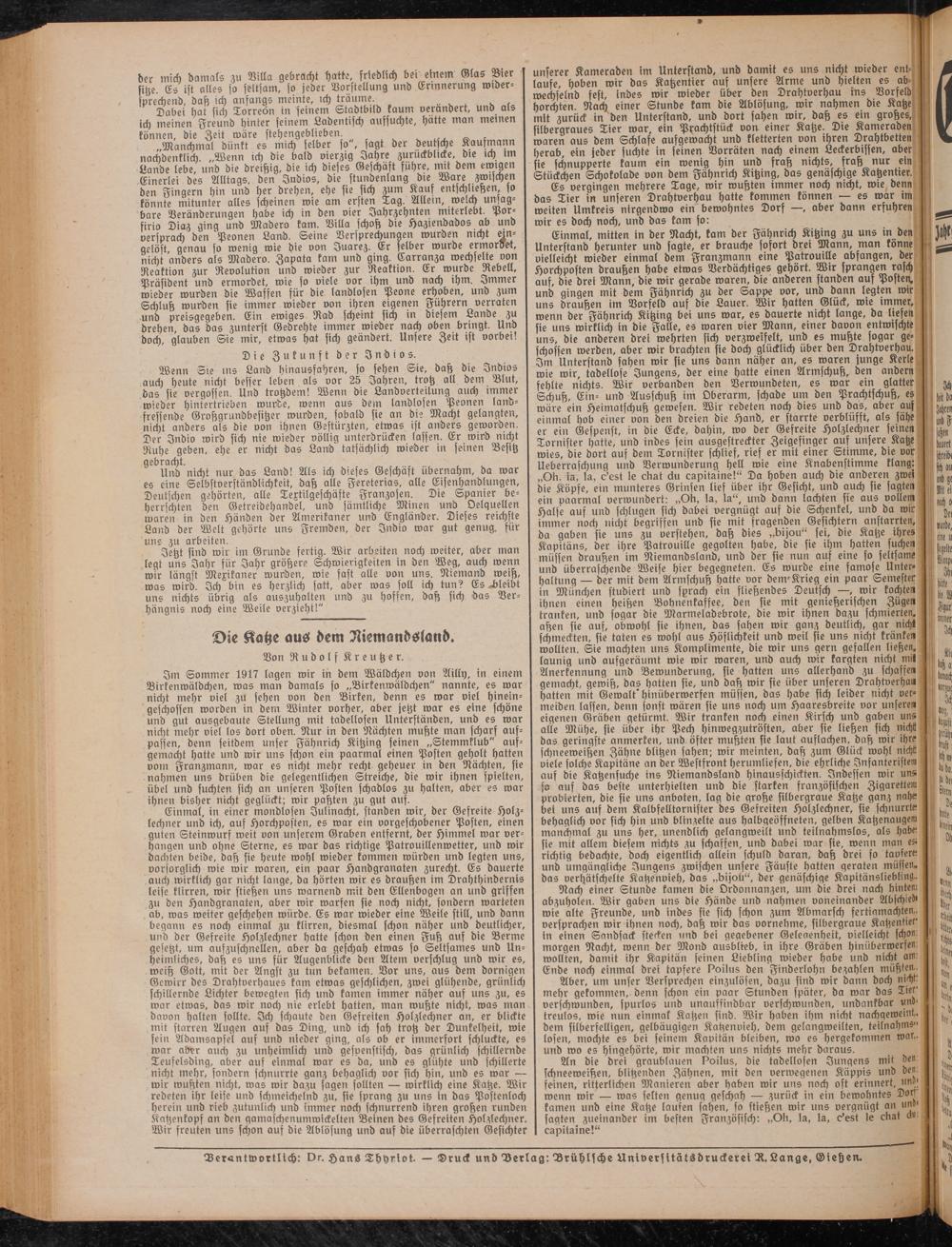 Verantwortlich: vc. Hans Thyriot. — Druck und Verlag: Vrühlsche Universttätsdruckerei V. Lange, Gießen.