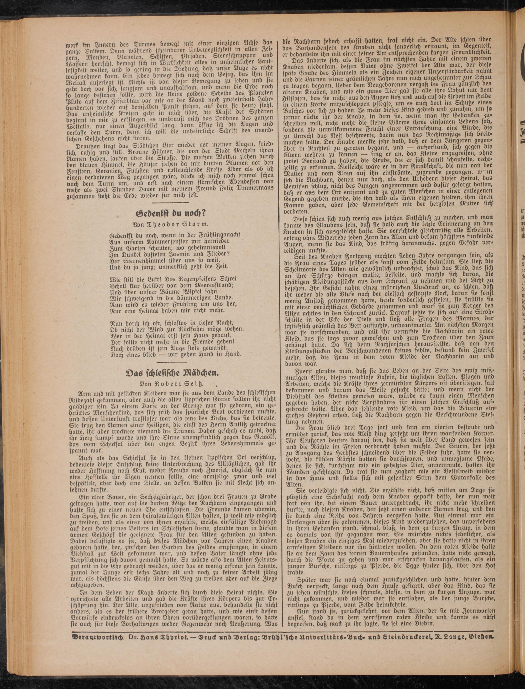 Verantwortlich. Dr. Hans Thhrtot. — Druck und Verlag: Vrühl'sche UniverlitätS-Buch- und Steindrackeret, A. Lange, Gießen.
